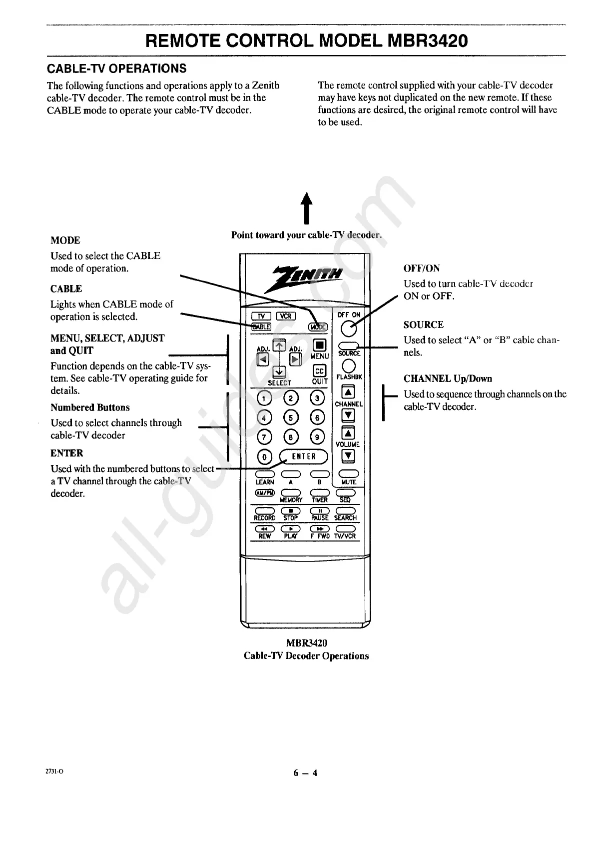 CABLE mode to operate your cable-TV decoder.