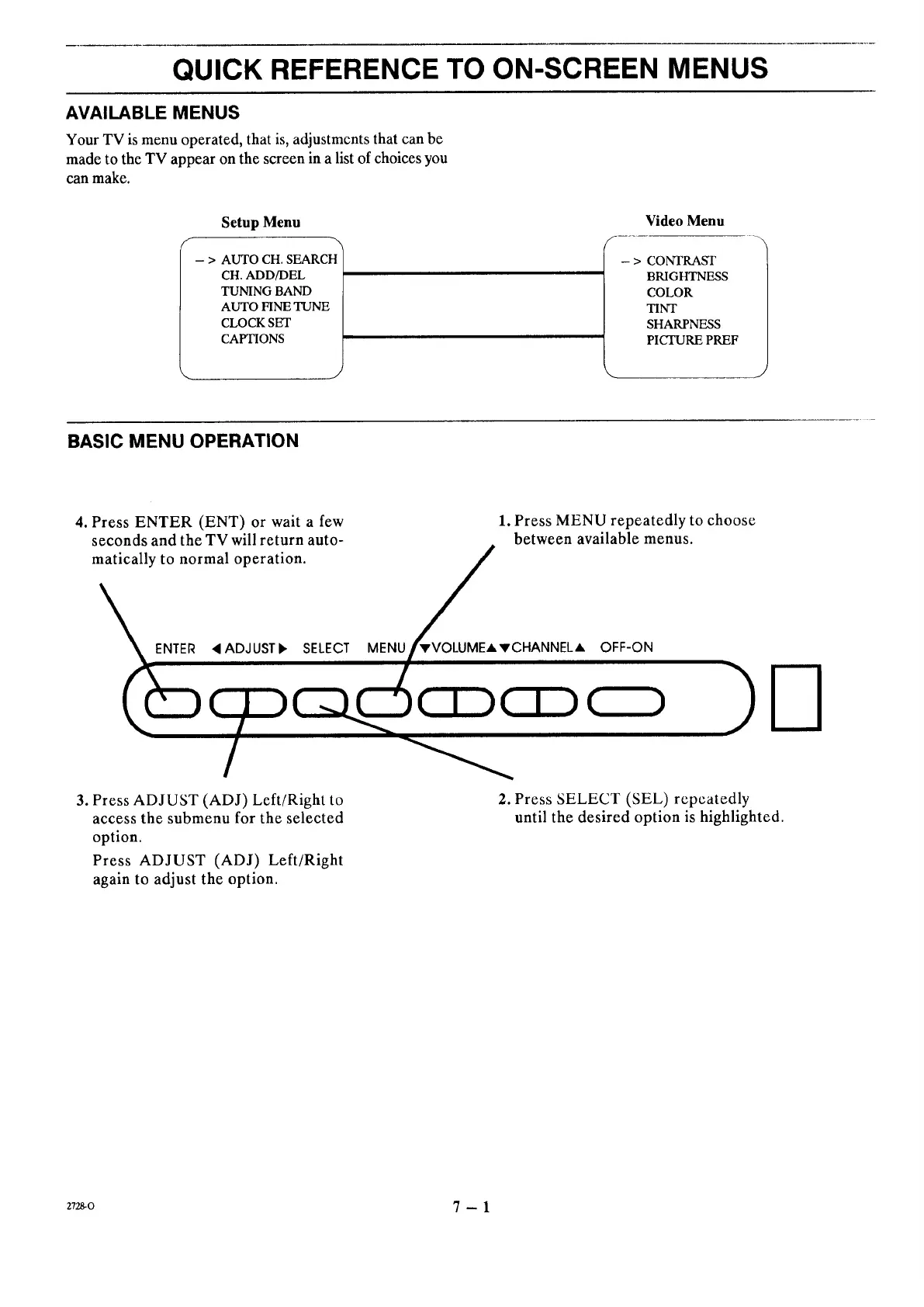 QUICK REFERENCE TO ON-SCREEN MENUS