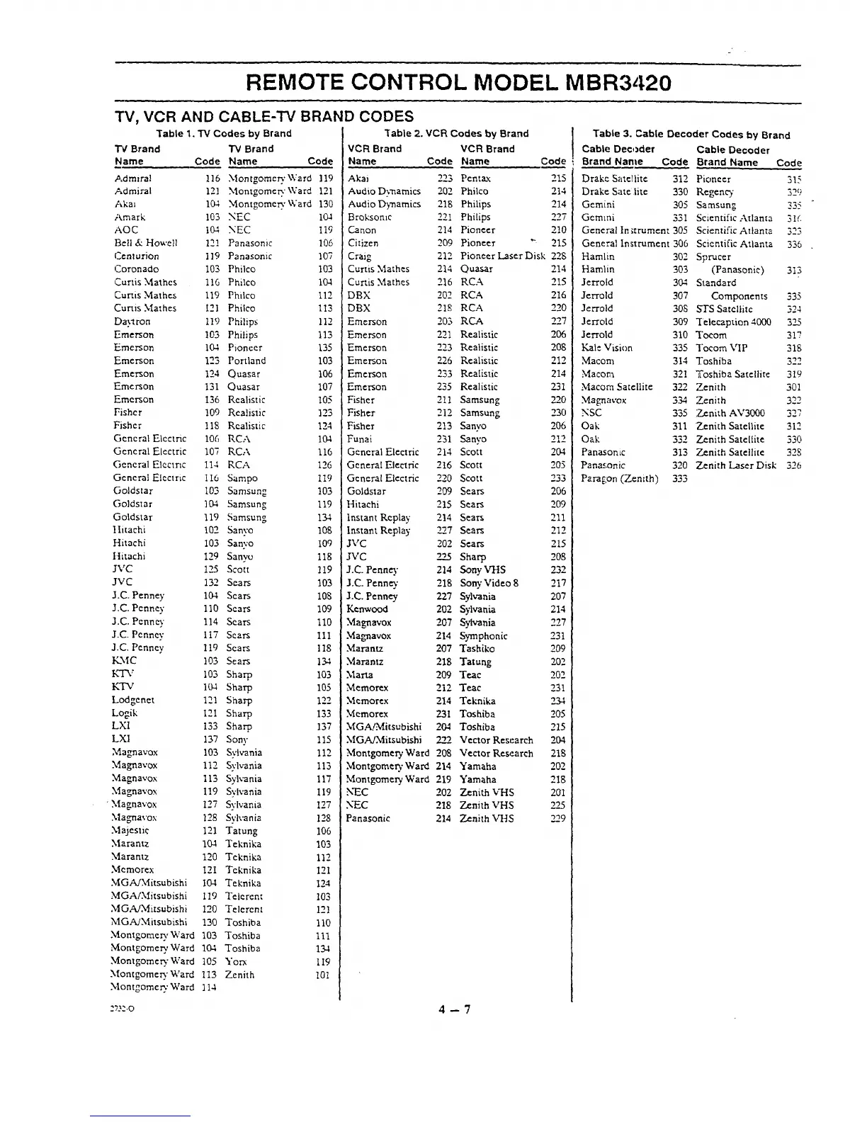 Table 3. Cable Decoder Codes by Brand