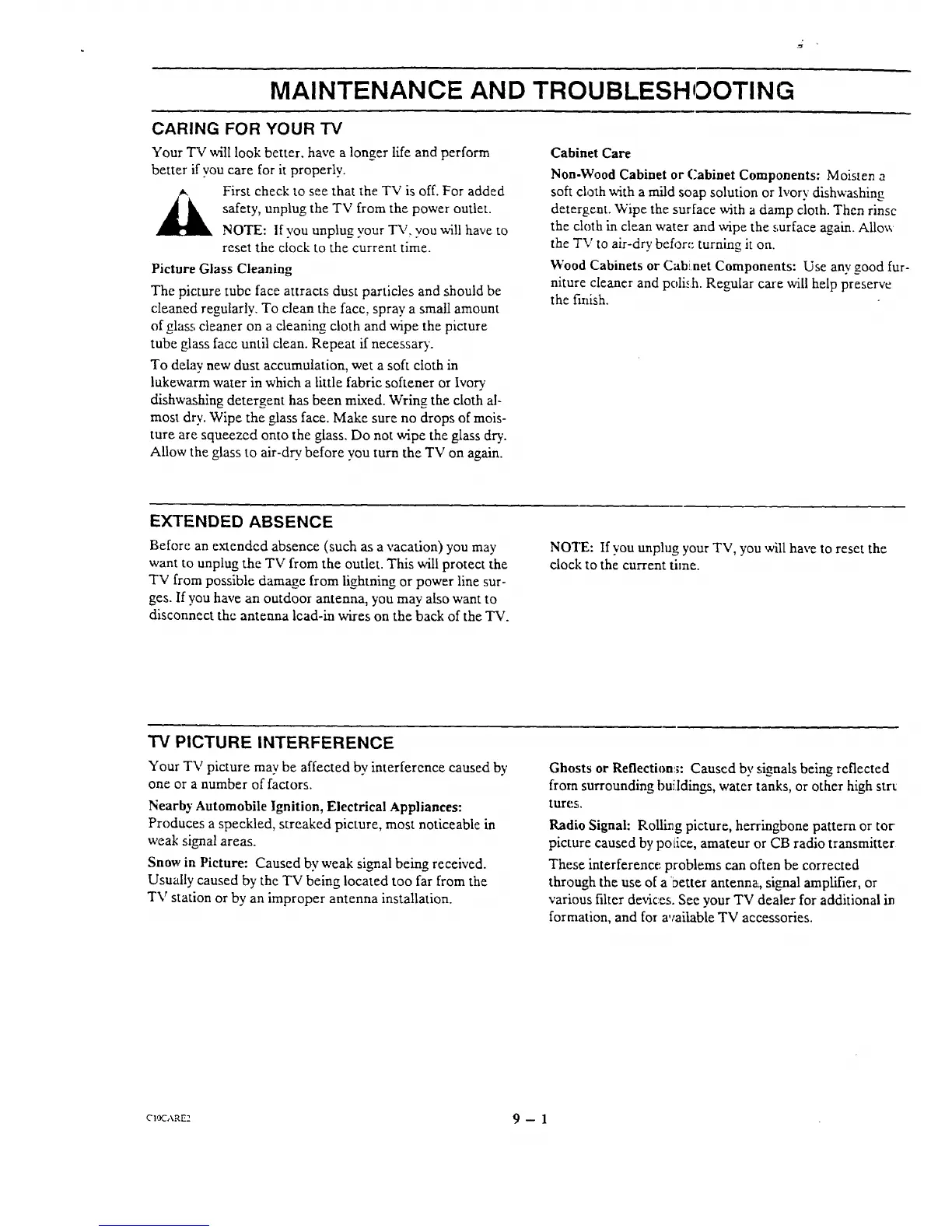 CARING FOR YOUR TV