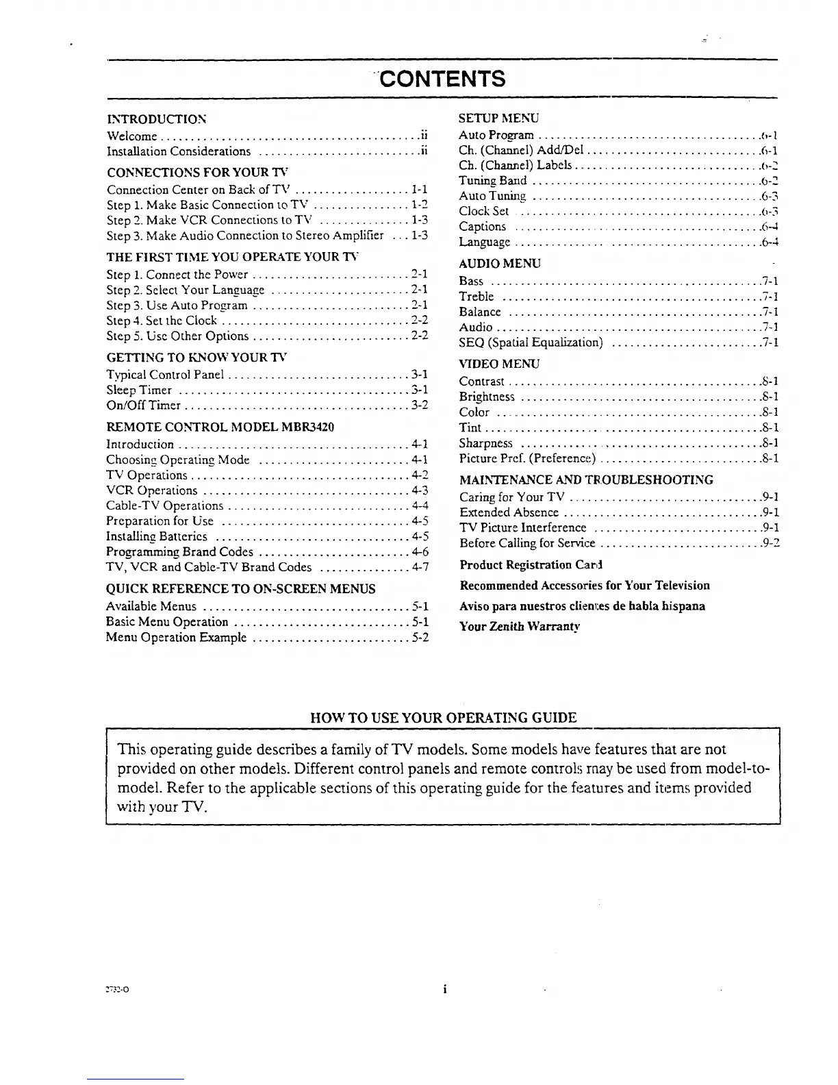 Caring for Your TV ................................ 9-1