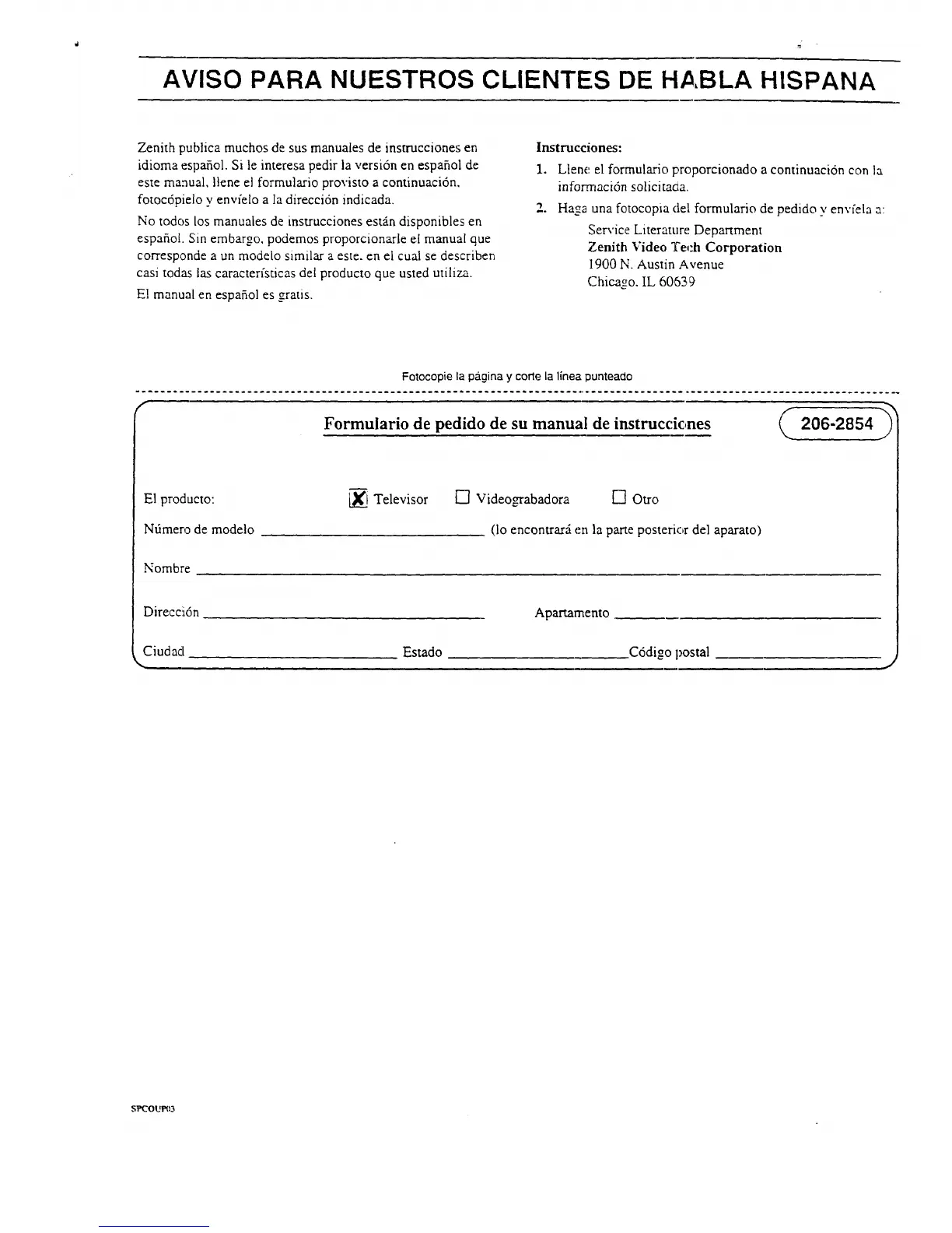 AVISO PARA NUESTROS CllENTES DE HABLA HISPANA