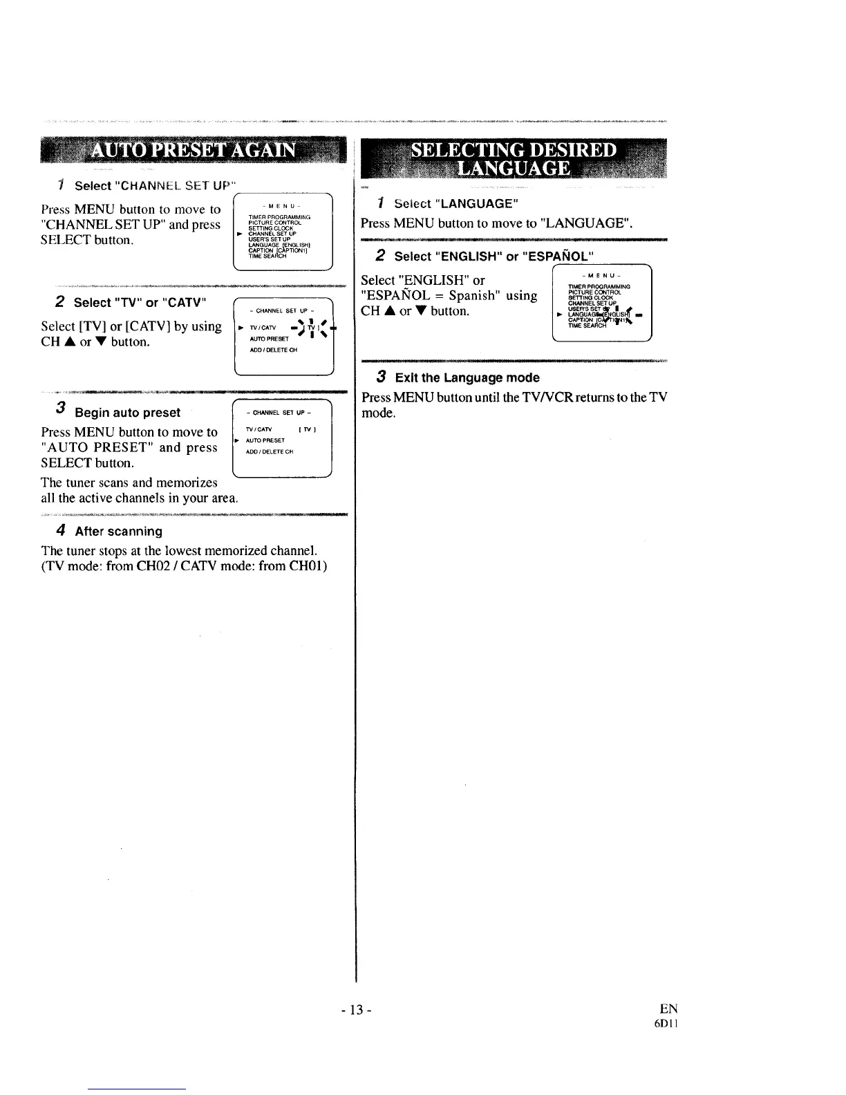 "CHANNEL SET UP" and press SE_,.GOL_K