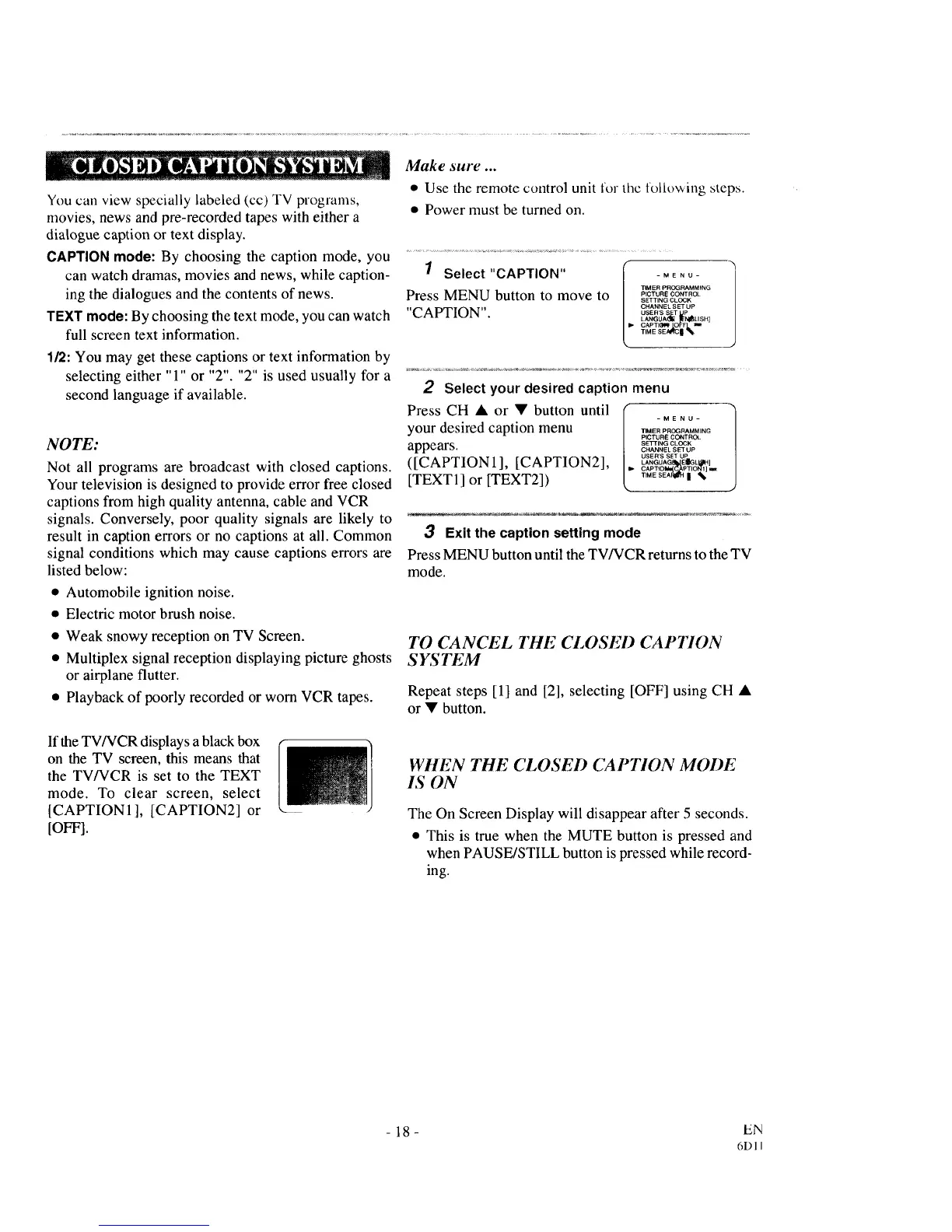 WHEN THE CLOSED CAPTION MODE