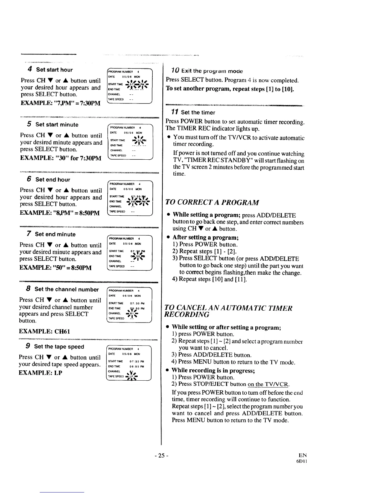 To set another program, repeat steps [1] to [10].