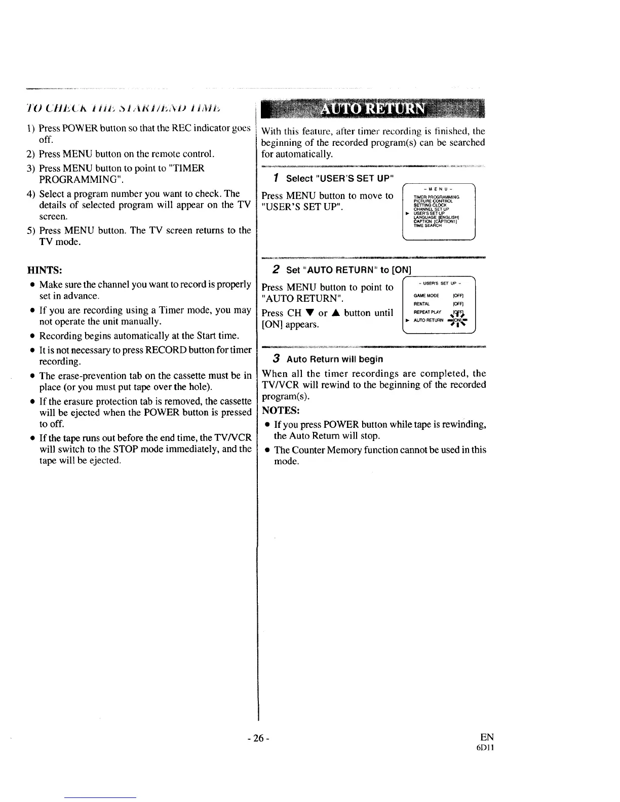 • If the tape runs out before the end time, the TV/VCR