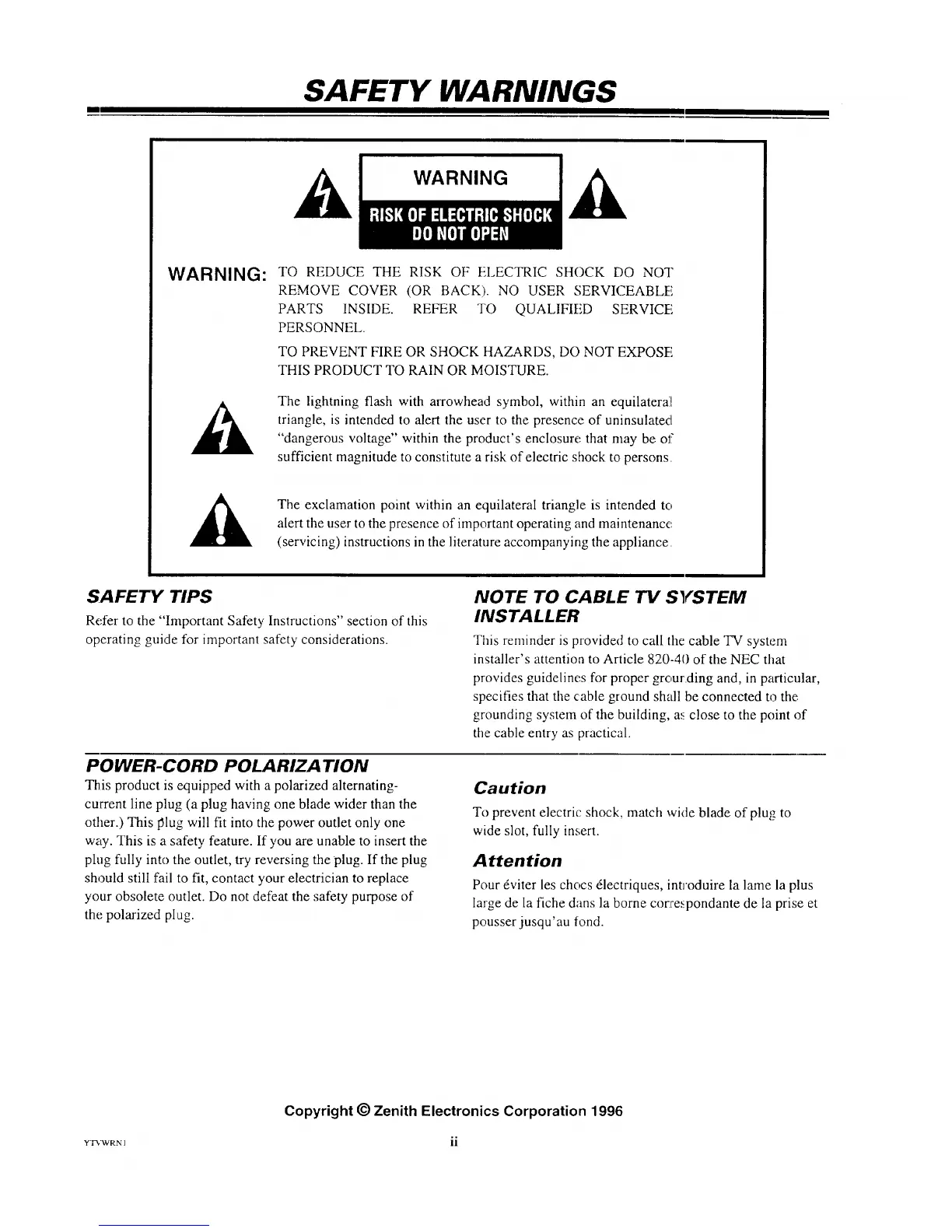 Copyright _) Zenith Electronics Corporation 1996