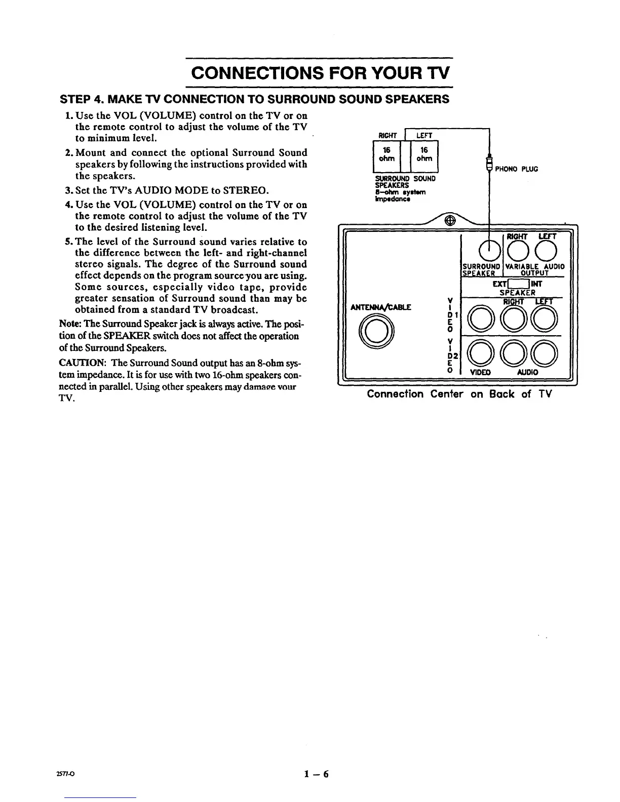 STEP 4. MAKE TV CONNECTION TO SURROUND SOUND SPEAKERS