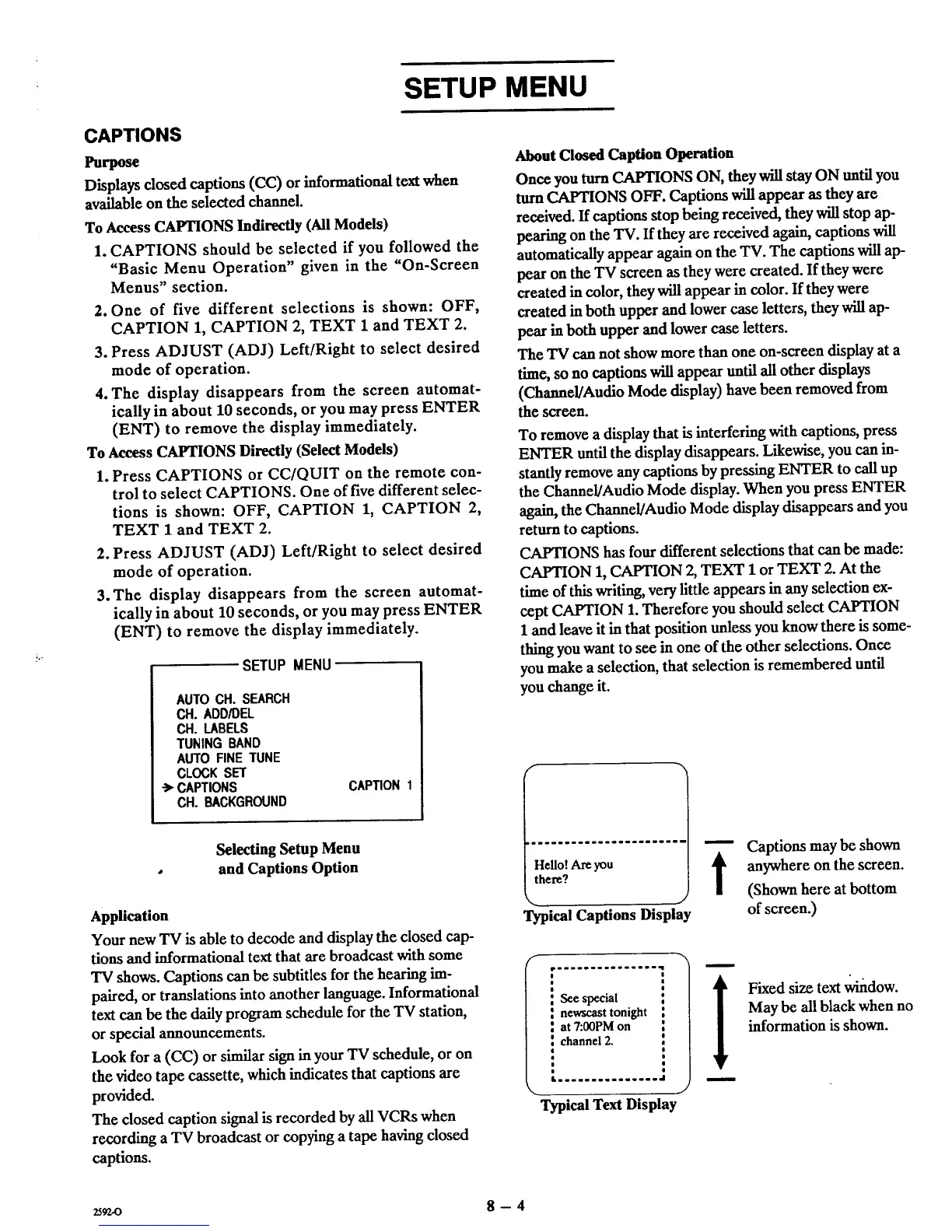 To Access CAPTIONS Indirectly (All Models)