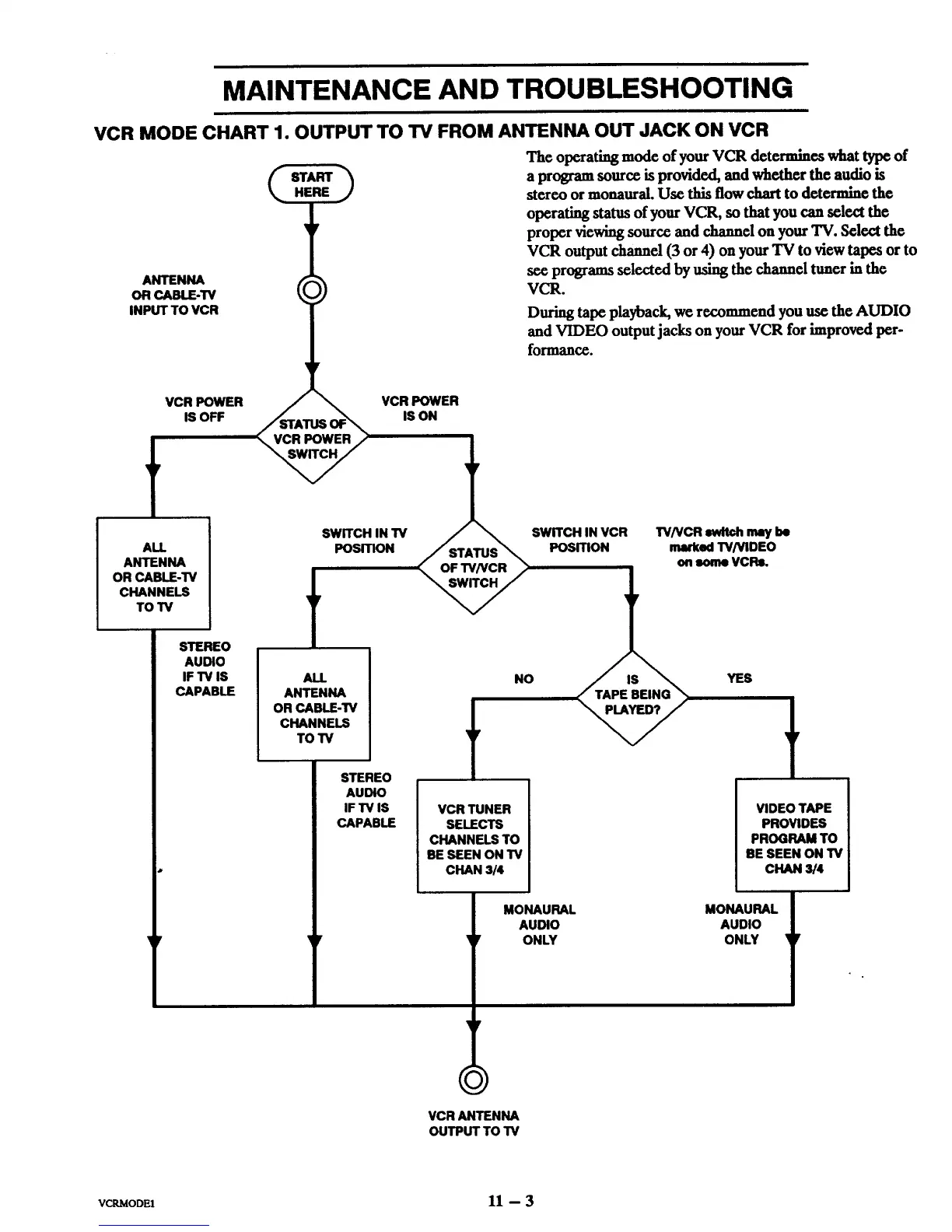 VCR MODE CHART 1. OUTPUT TO TV FROM ANTENNA OUT JACK ON VCR