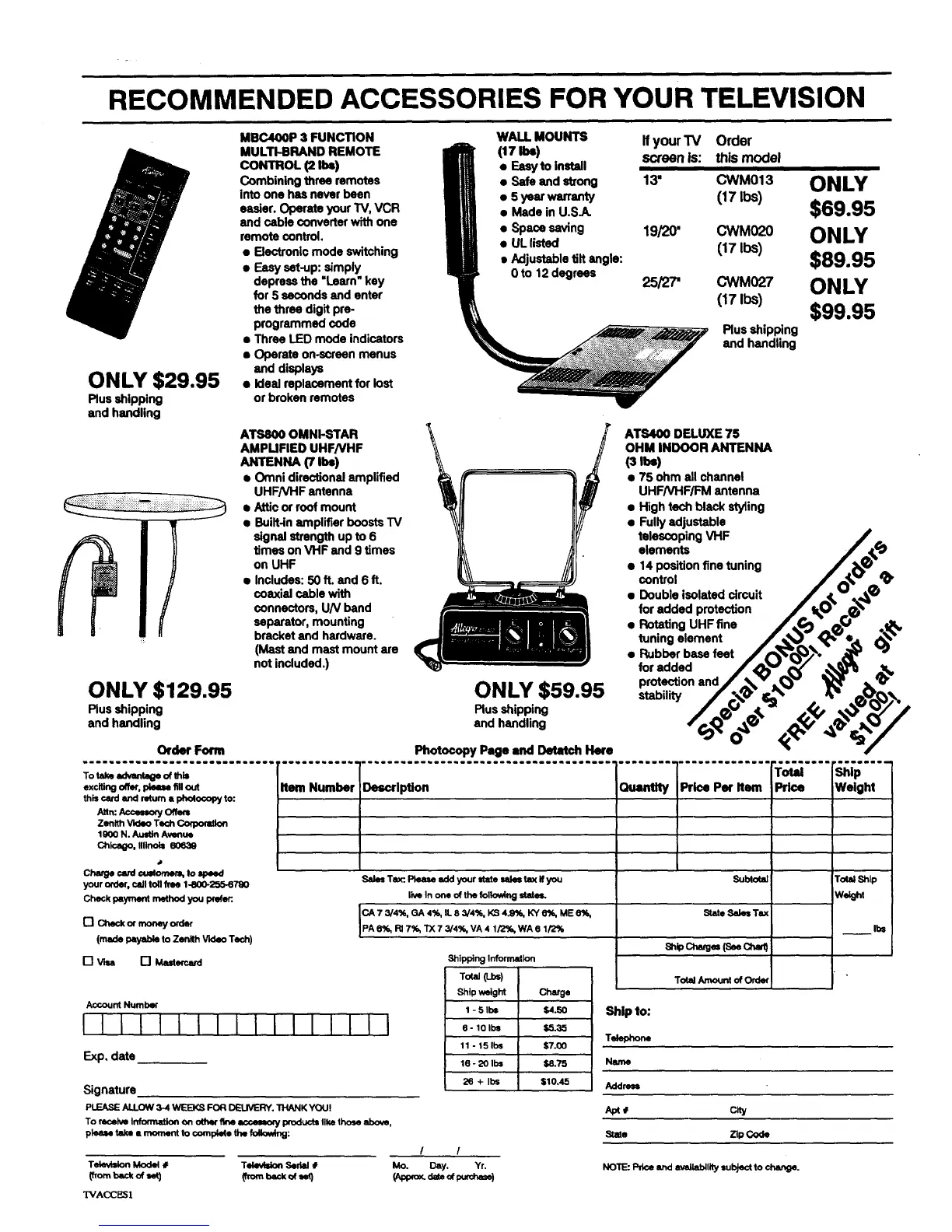 RECOMMENDED ACCESSORIES FOR YOUR TELEVISION