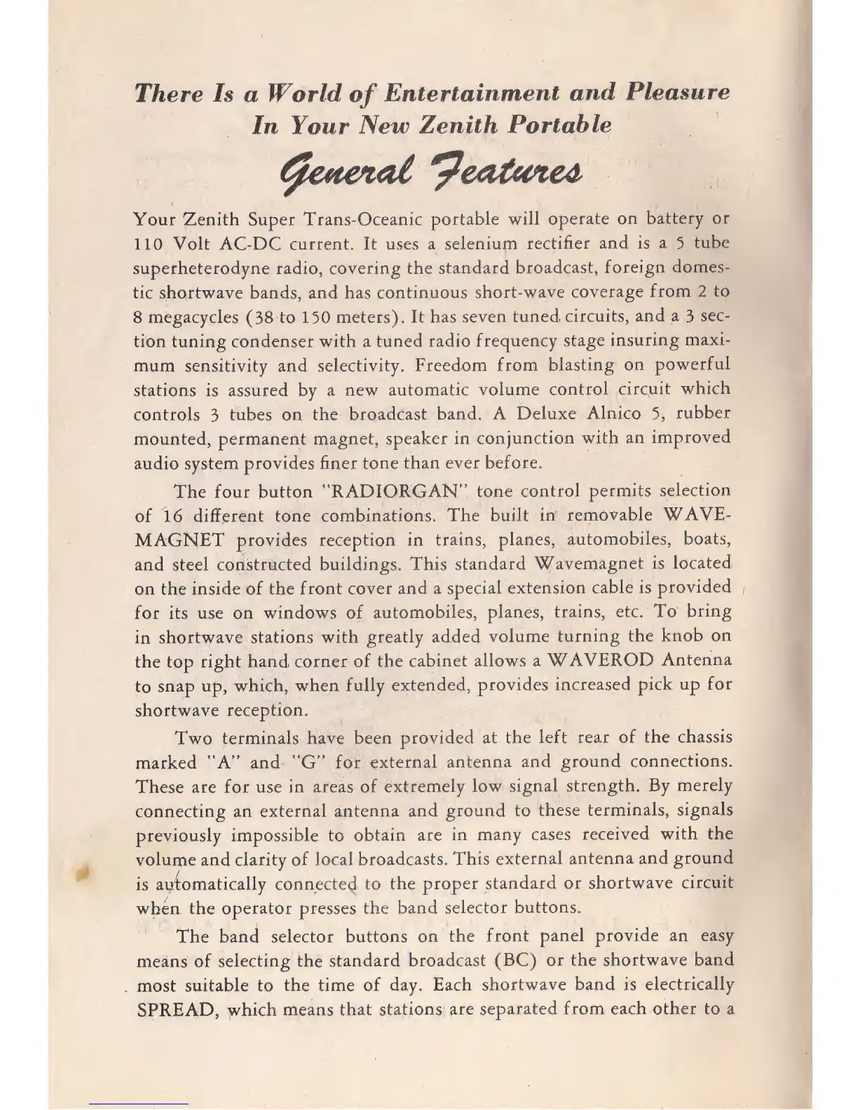 Zenith TRANS-OCEANIC H500 - General Features