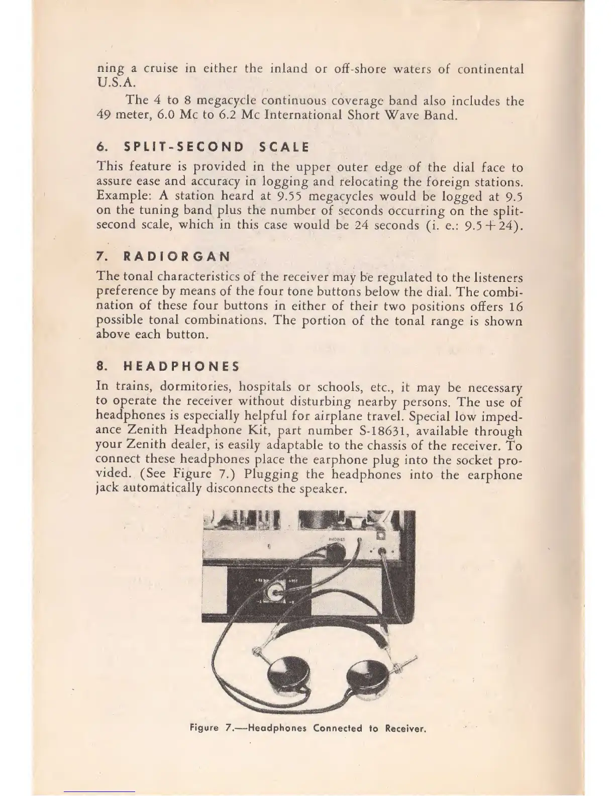 Zenith TRANS-OCEANIC H500 - Split-Second Scale; Radiogram; Headphones; Headphones Connected to Receiver