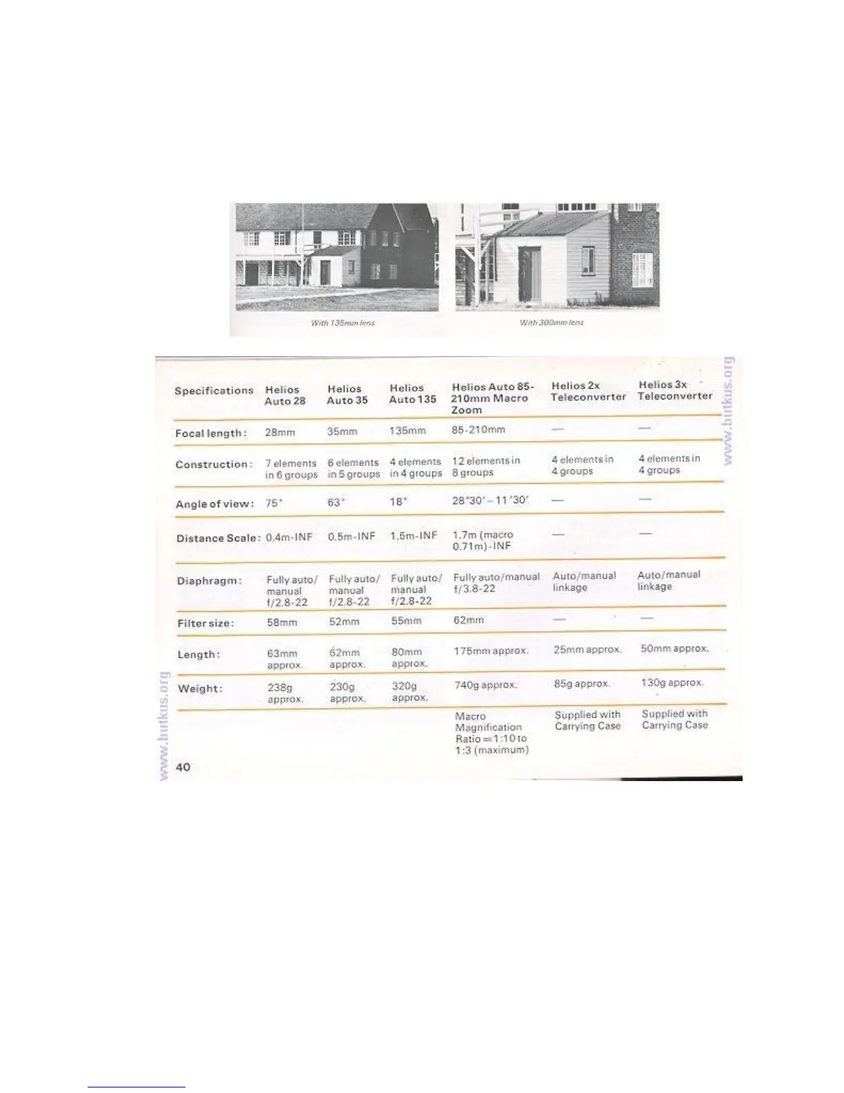 For example, the Helios Auto 1 35 has a focusing range of 1 .5m to infinity; whether the 2x or 3x