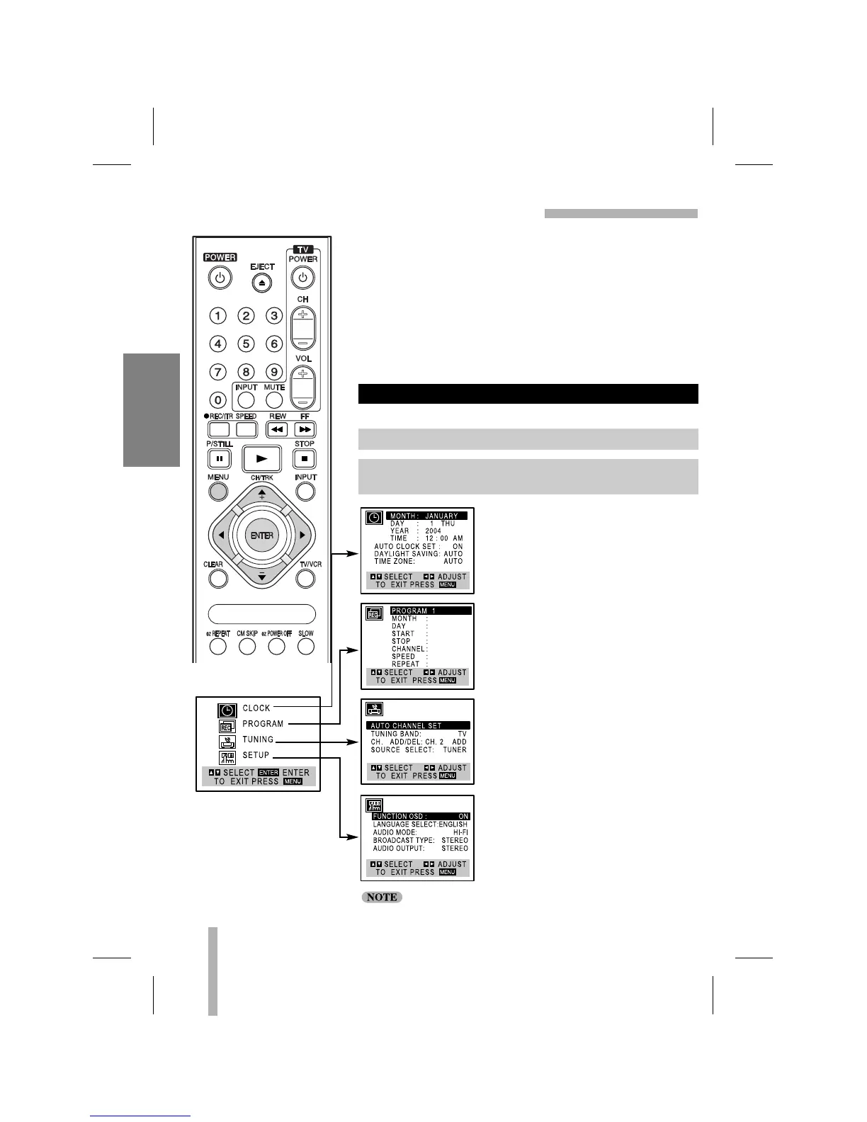 • Tune the TV to the VCR output channel (CH 3 or 4).