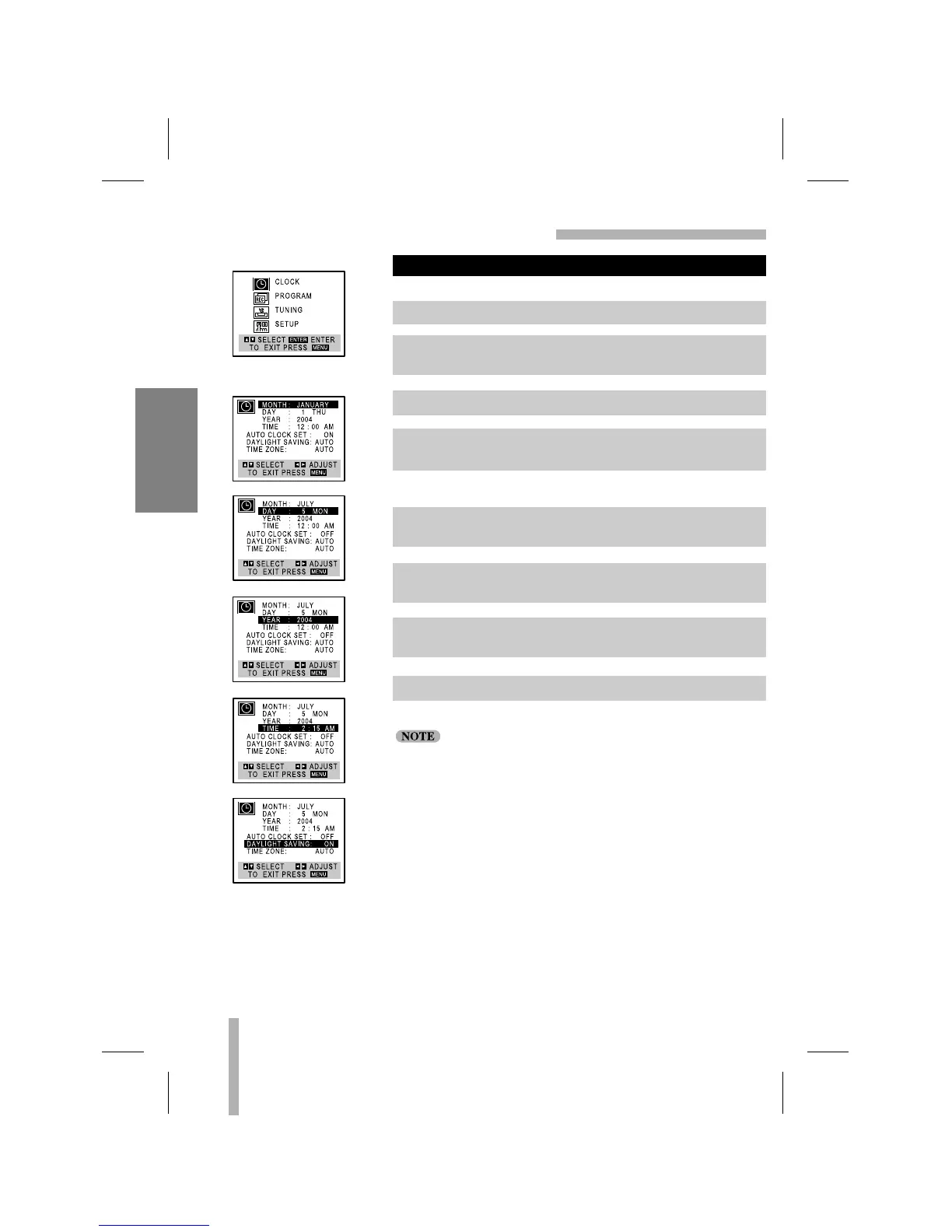 “AUTO CLOCK SET” must be set to “OFF”. If set to “ON”, an