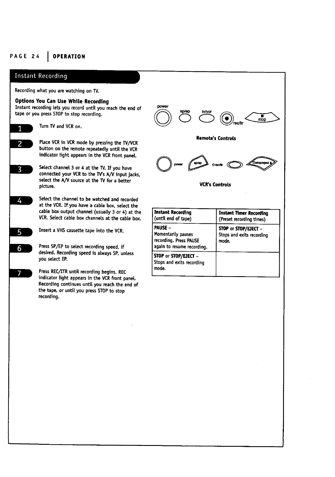 VCR.Setectcabte box channelsat the cabtebox.