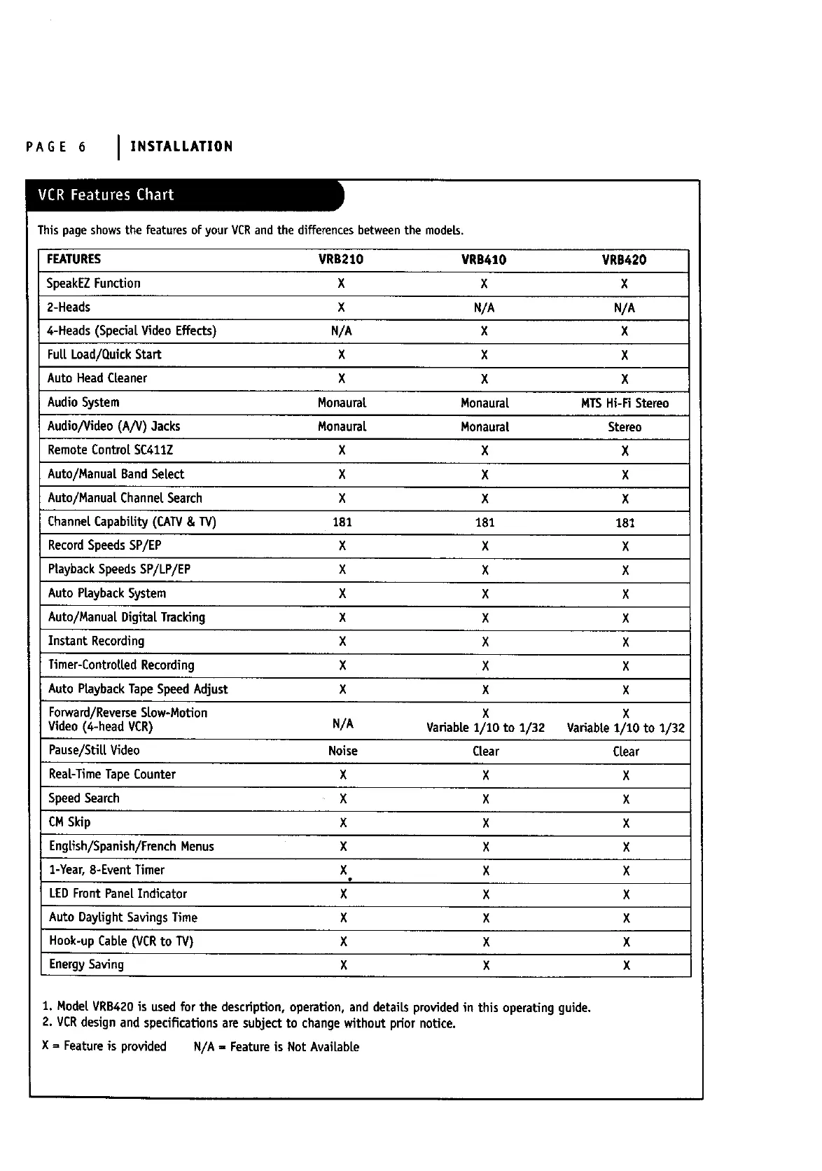 This pageshowsthe featuresof your VCRand the differencesbetweenthe models.