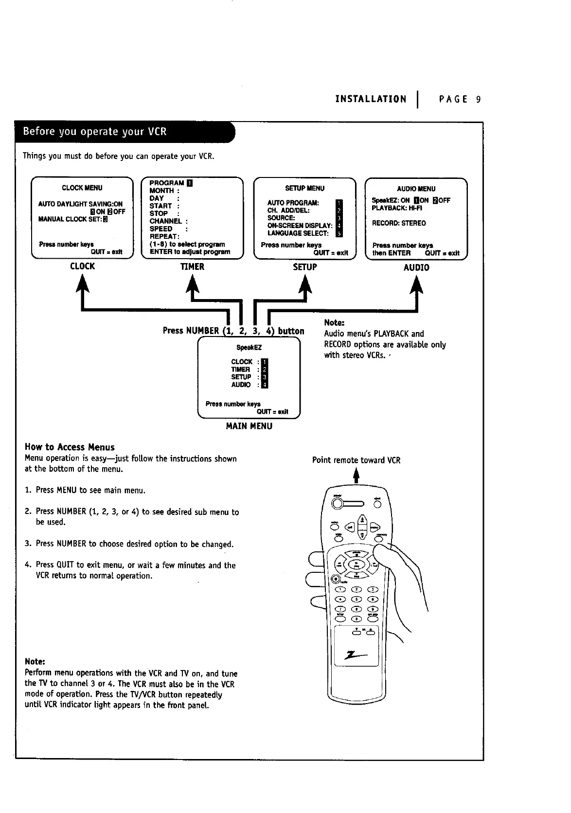 Thingsyou must do beforeyou canoperate your VCR.