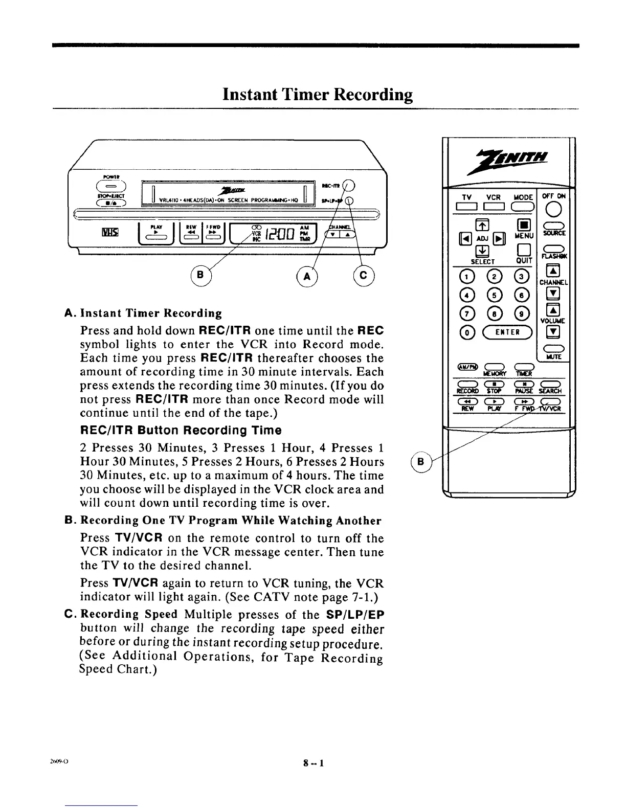 VCR indicator in the VCR message center. Then tune