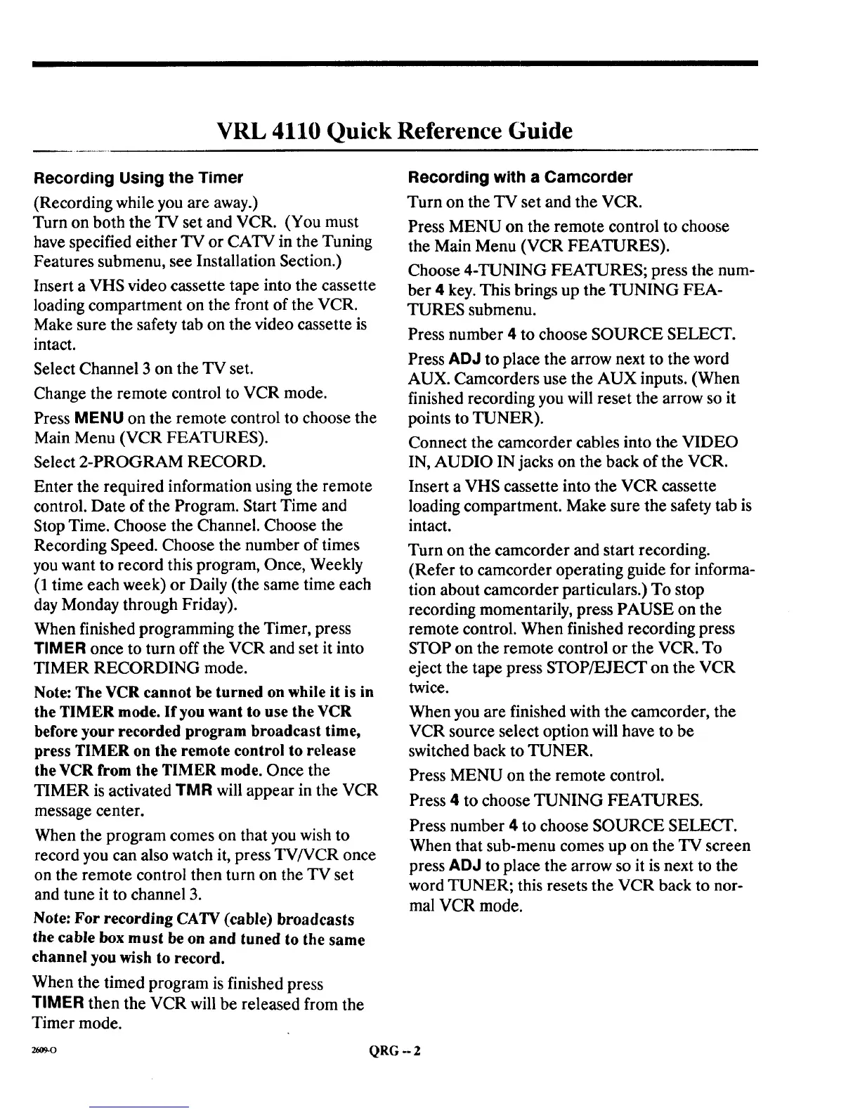 VRL 4110 Quick Reference Guide