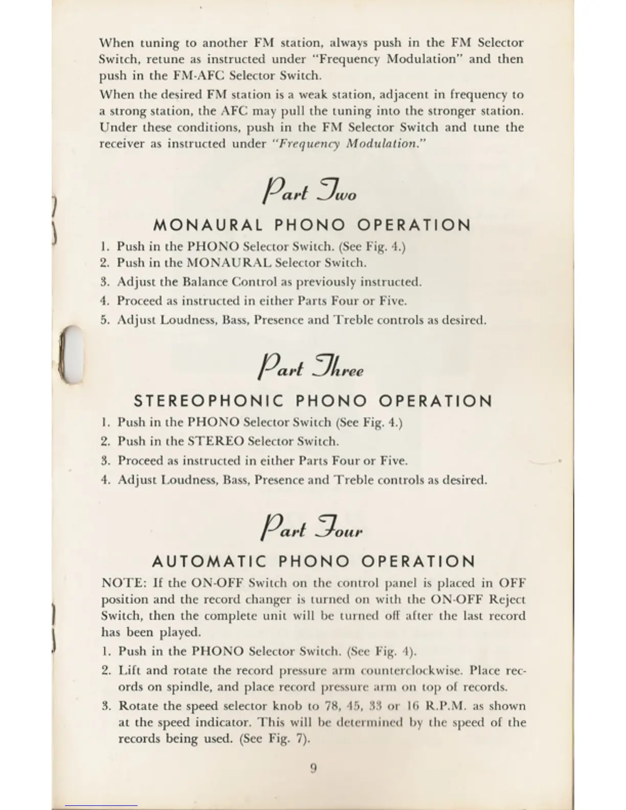 Zenith X960 - Monaural and Stereophonic Phono Modes