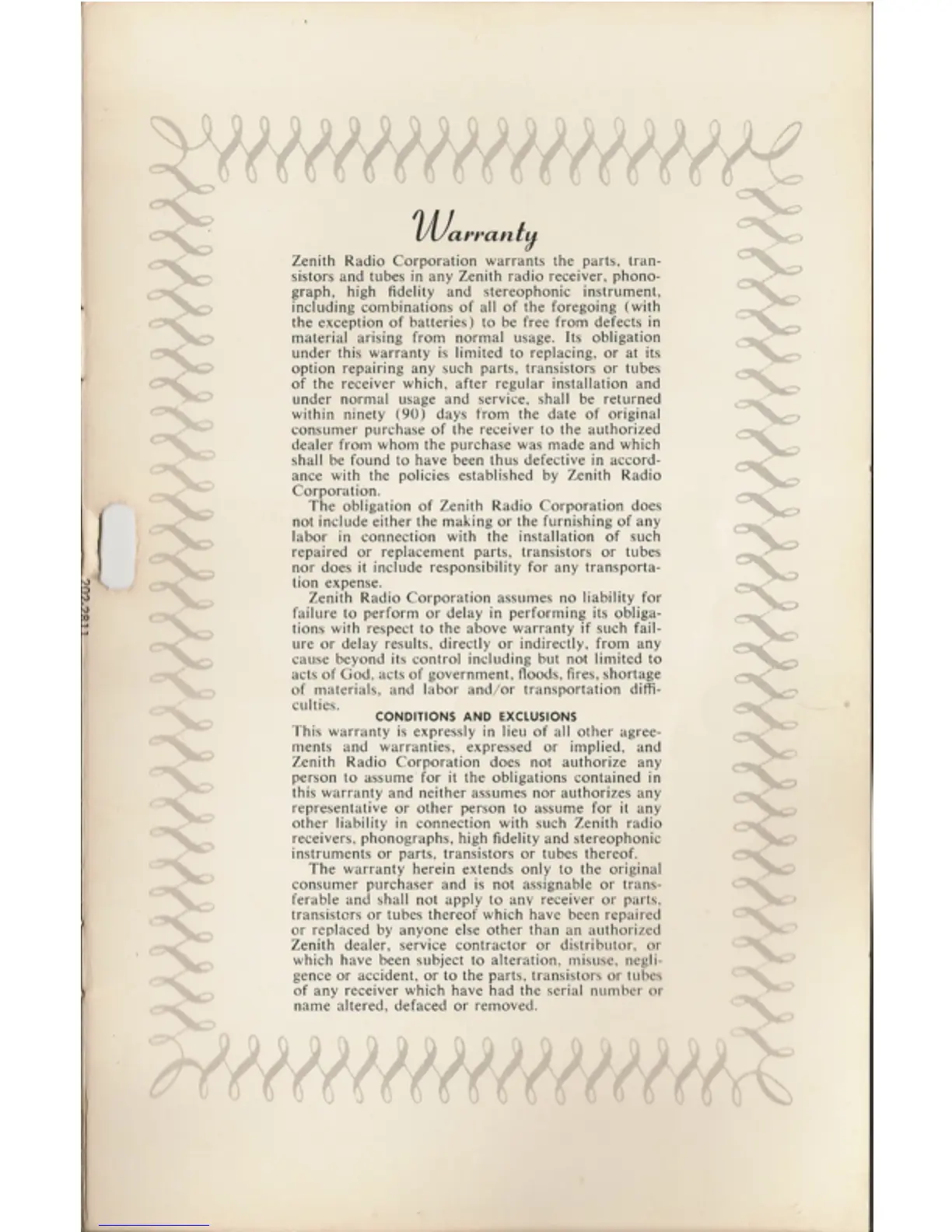 Zenith X960 - Zenith Product Warranty Details