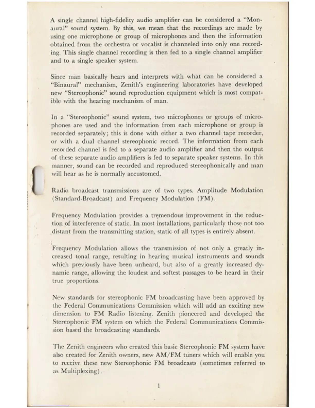 Zenith X960 - Stereophonic vs. Monaural Technology