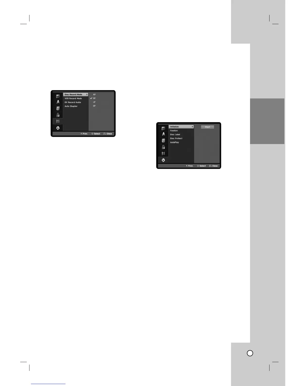• DVD-RW/DVD+RW/DVD+R: The Initialize menu will