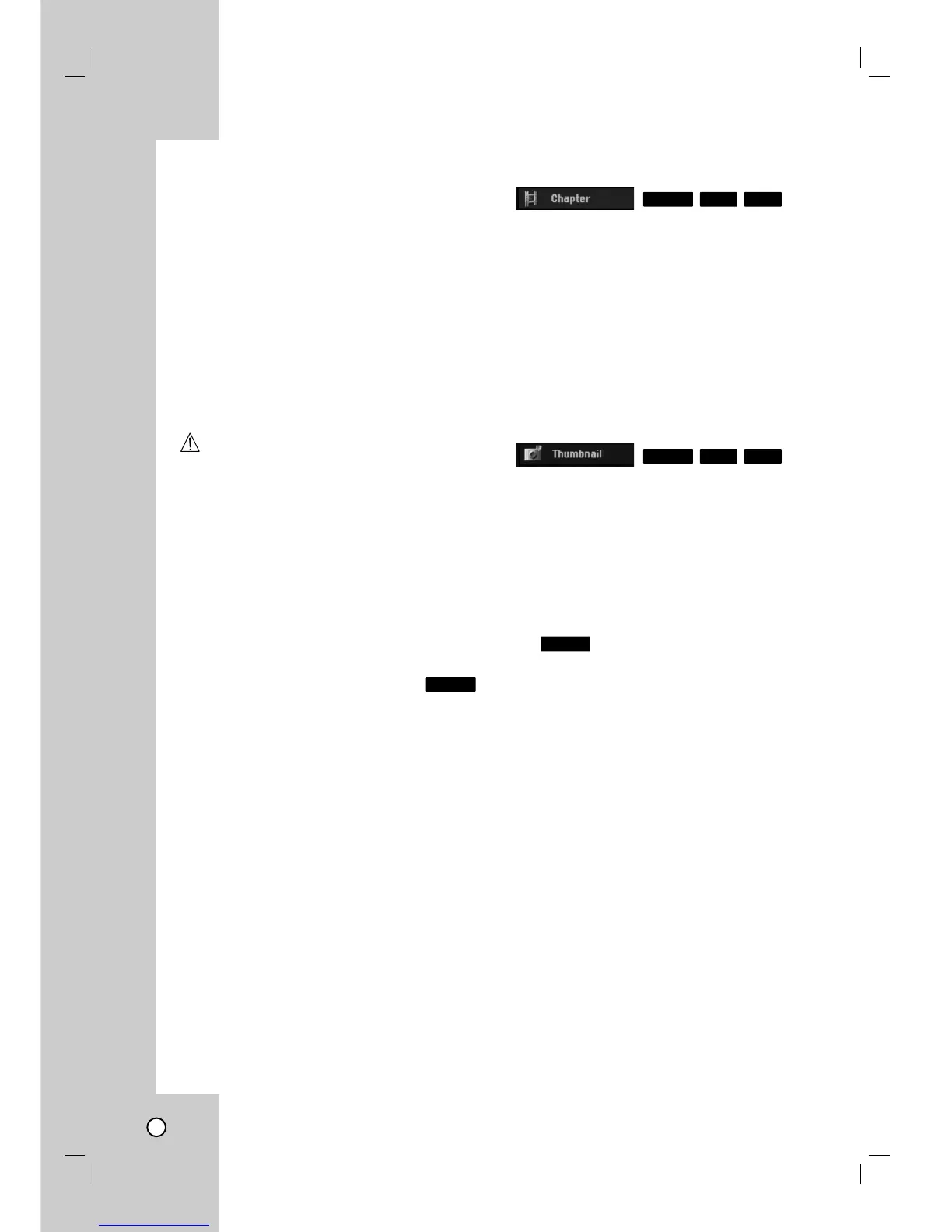 Chapter List menu then press THUMBNAIL. The
