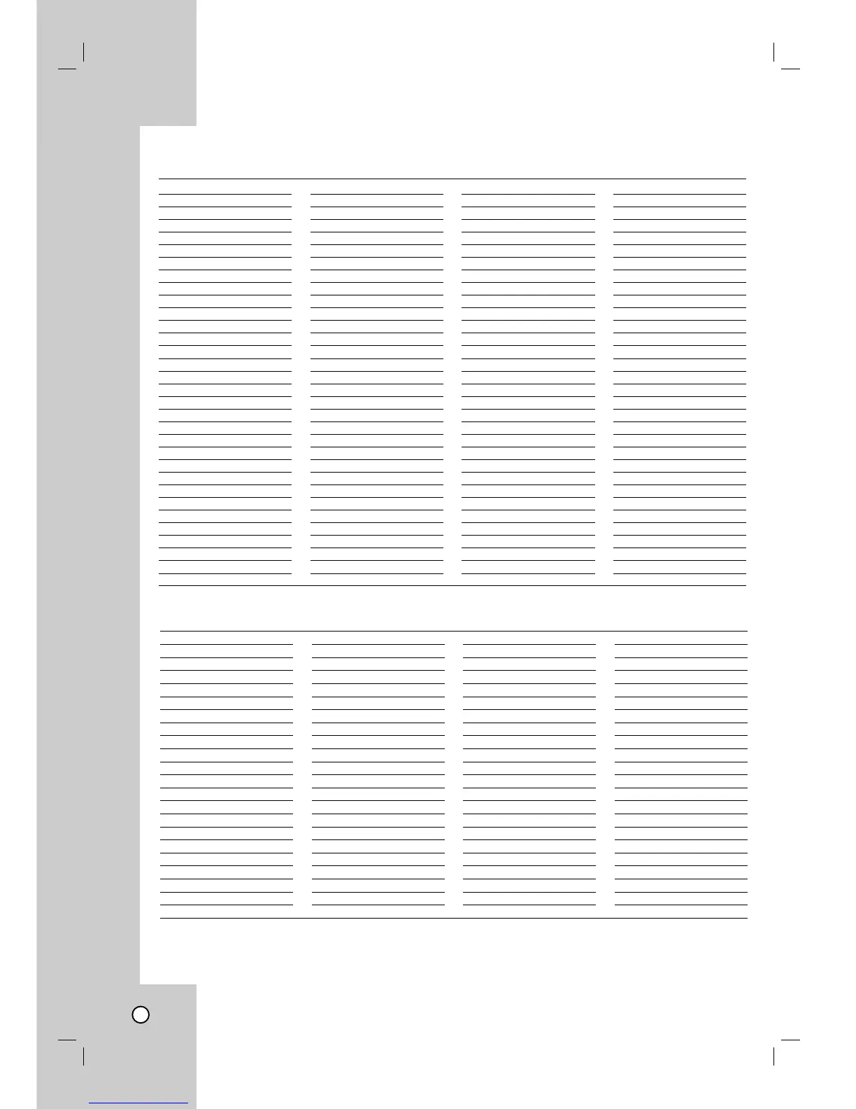 Zenith XBR716 - Language Code List; Area Codes List