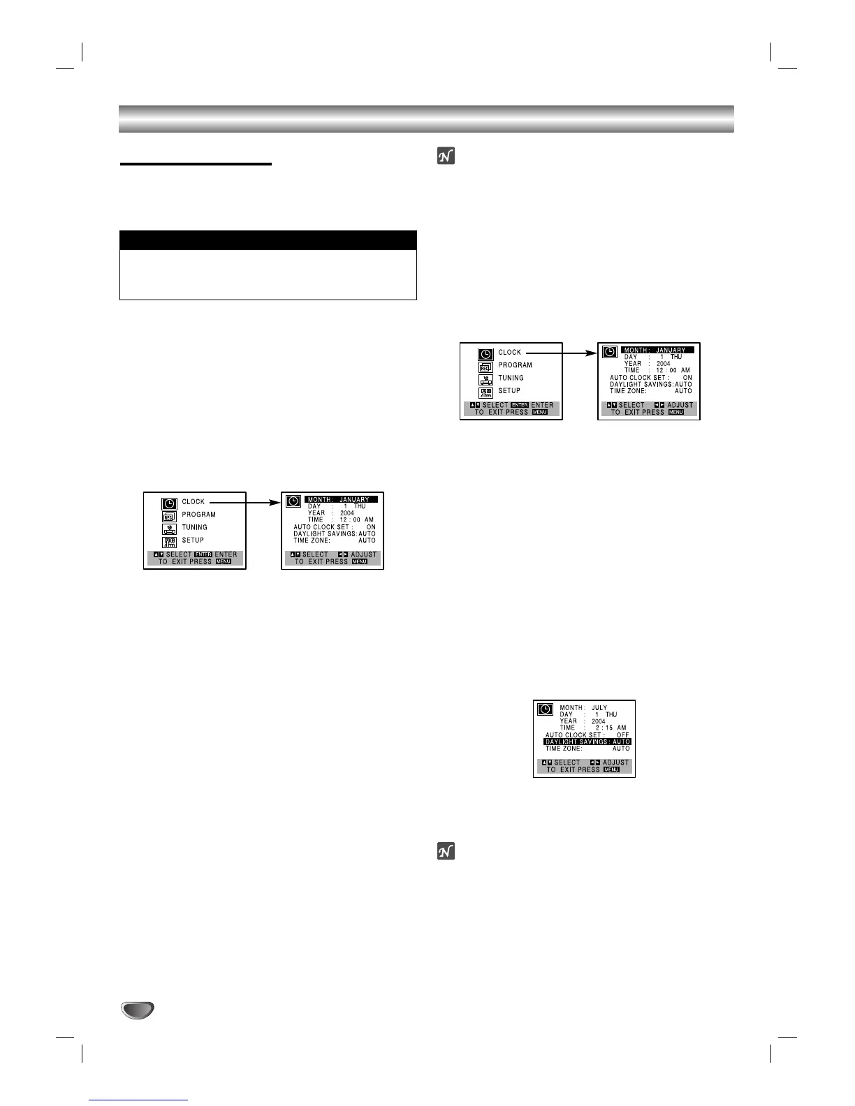 If you choose AUTO, the VCR sets the clock using the