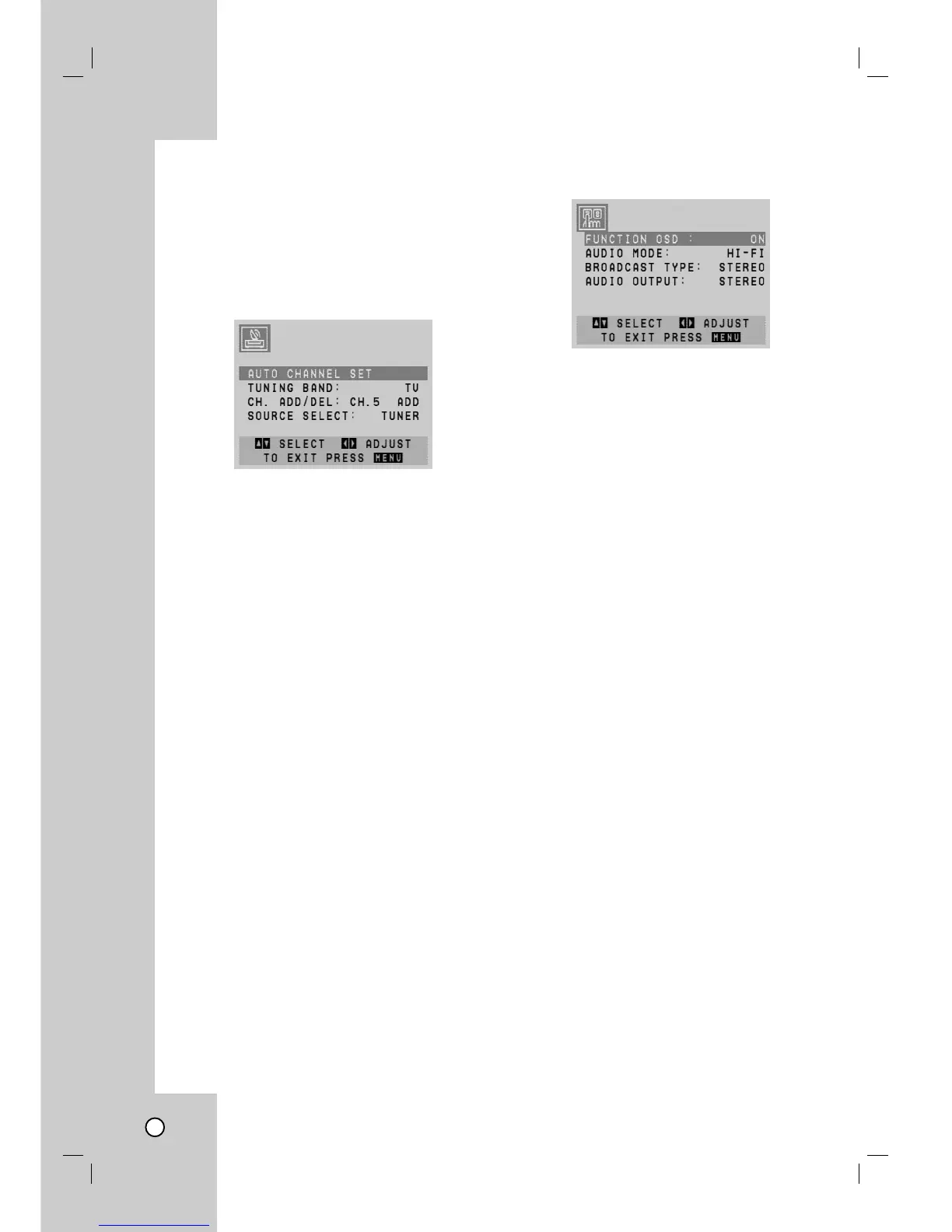 BROADCAST TYPE (STEREO/SAP/MONO)