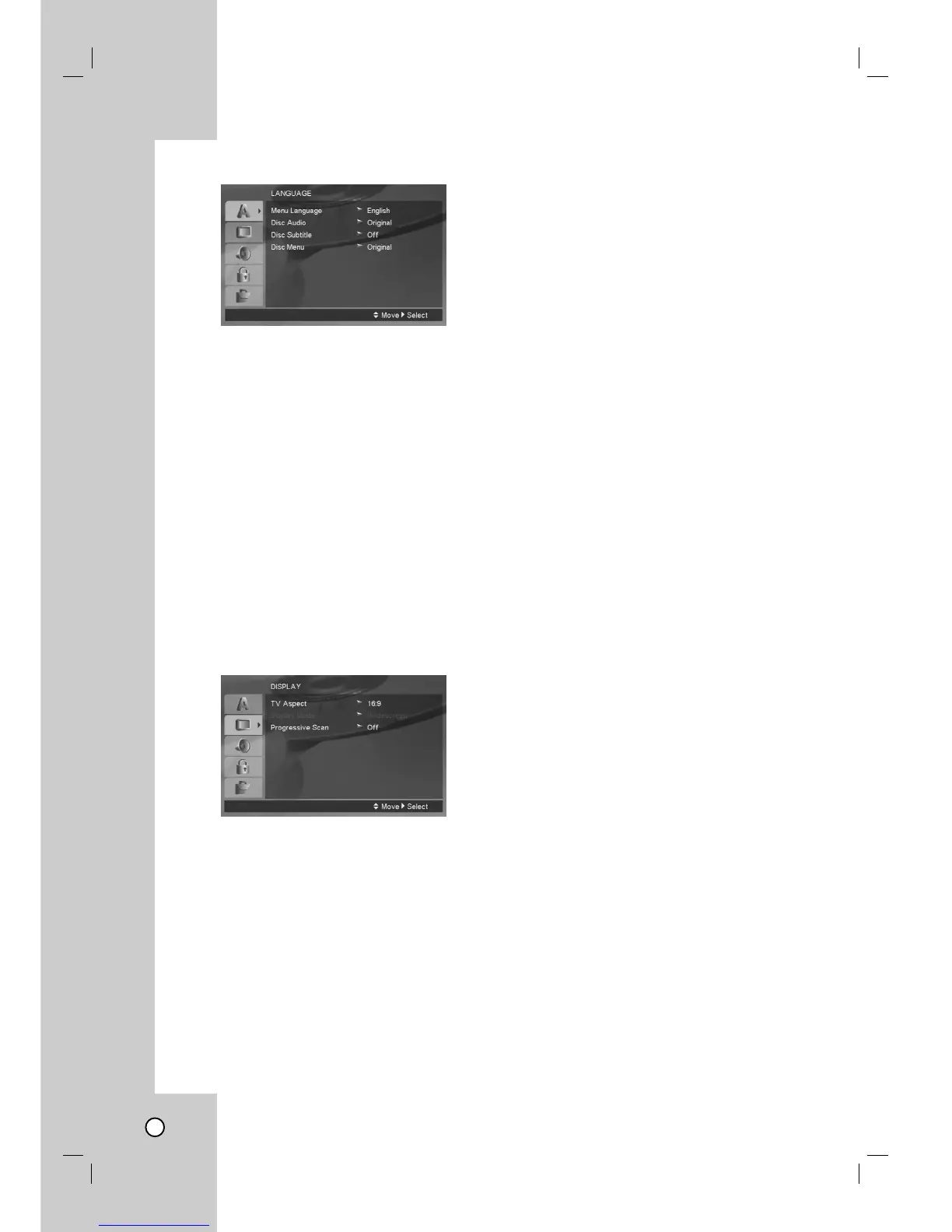 Select a language for the VCR and DVD’s setup