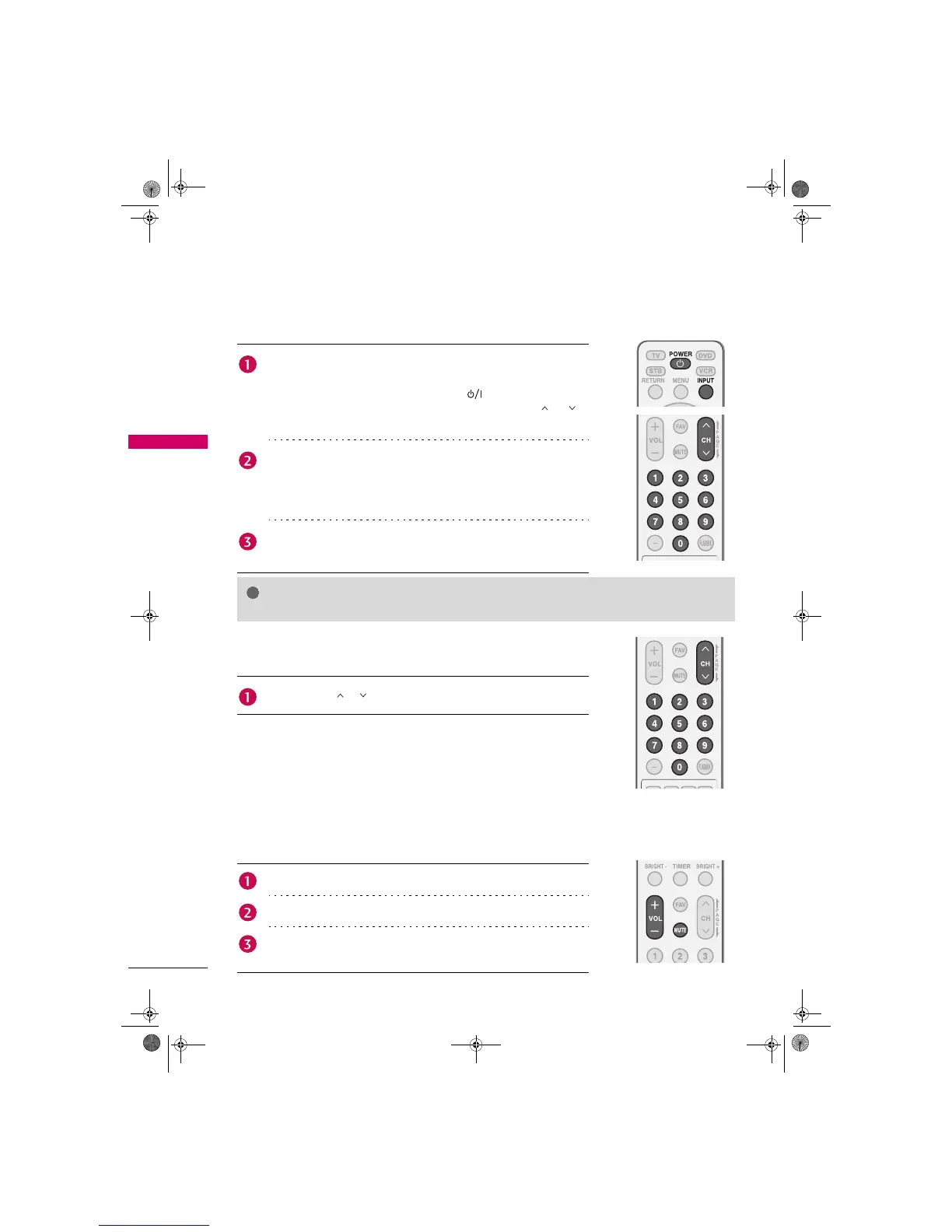 In standby mode to turn TV on, press the , INPUT, CH (S or T)