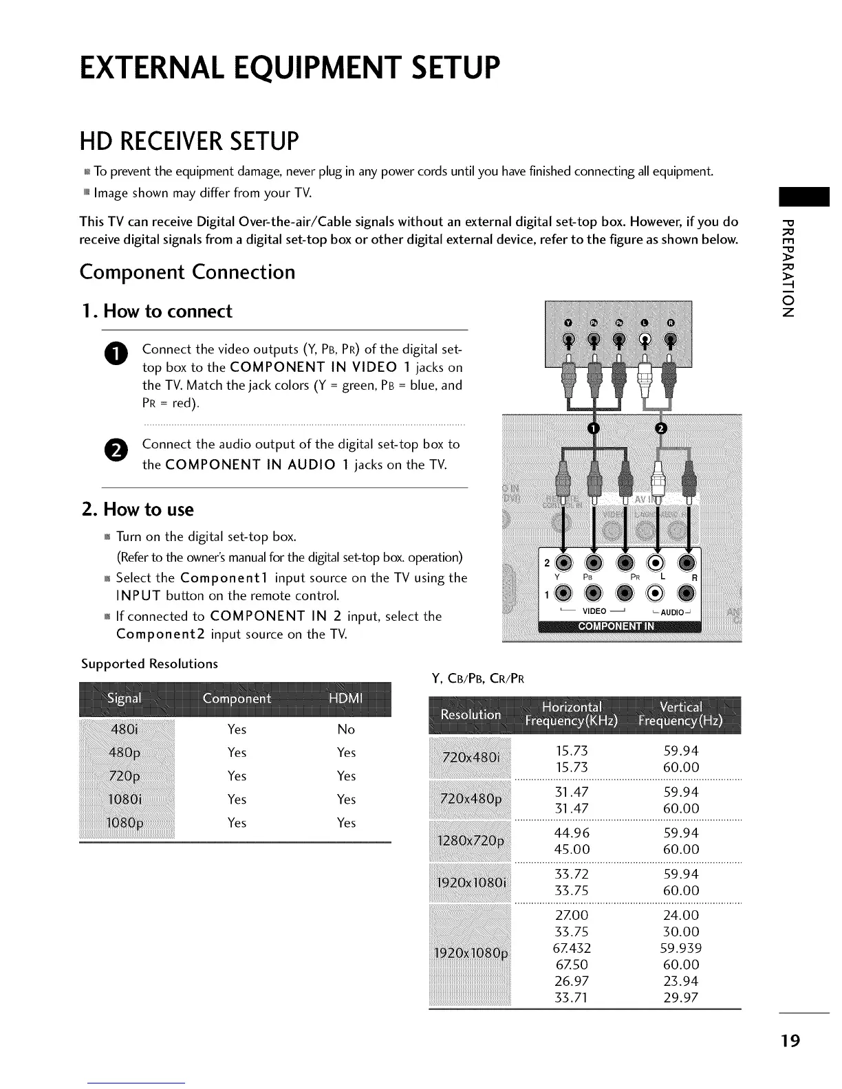Connect the video outputs (Y, PB, PR) of the digital set-
