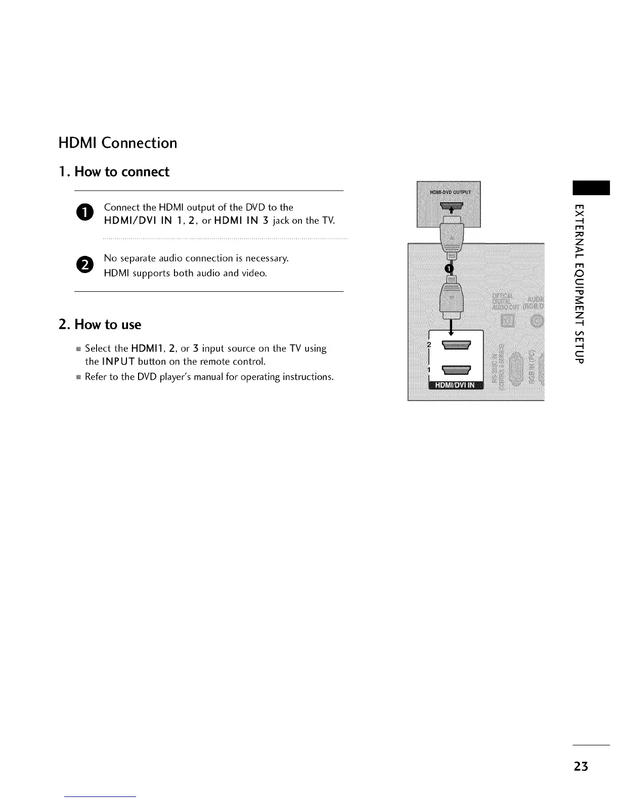 O Connect the HDMI output of the DVD to the
