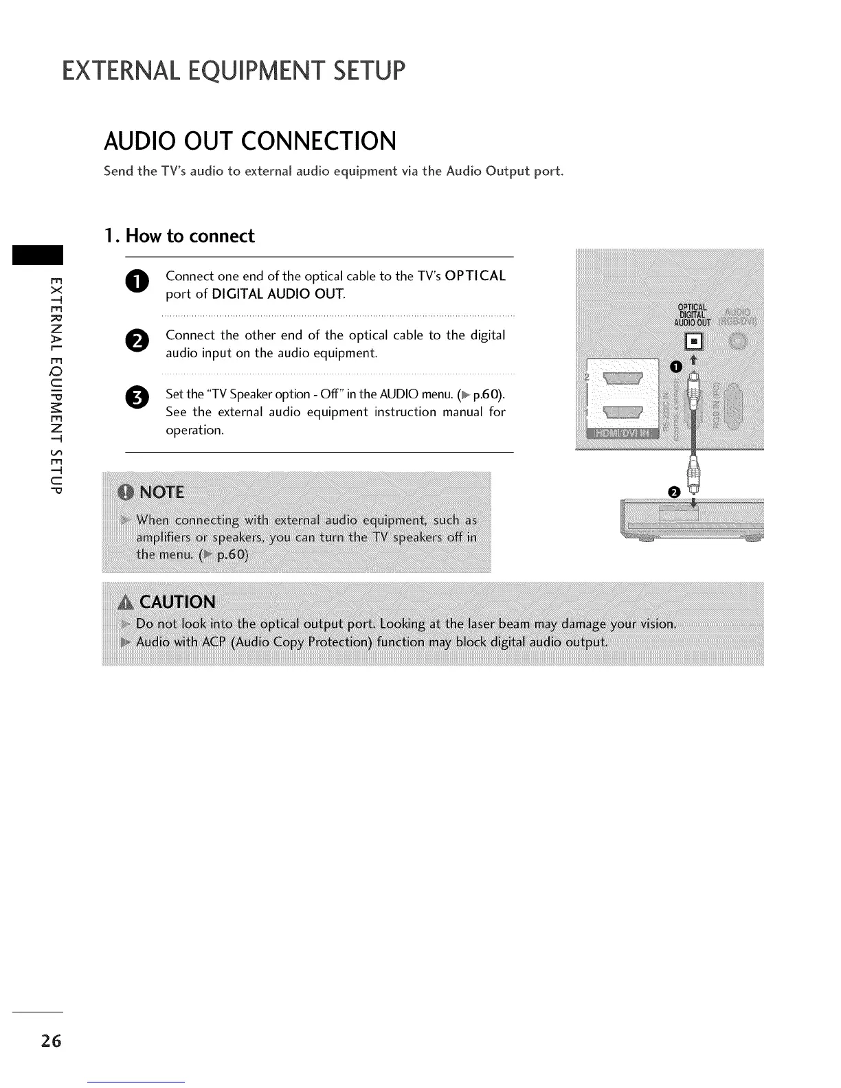 See the external audio equipment instruction manual for
