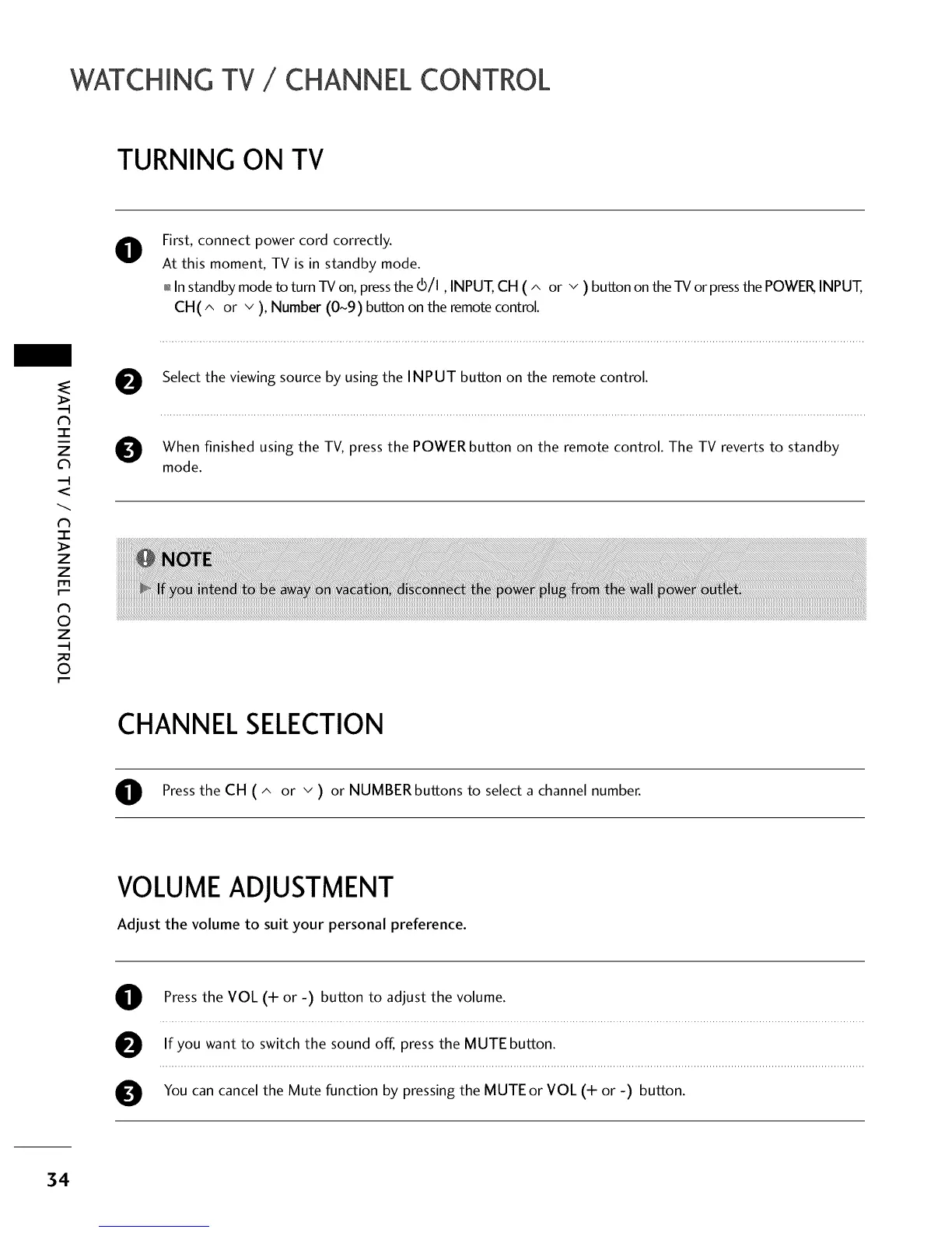 0,_In standby mode to turn TV on, press the (b/l, INPUT, CH ( ^ or v ) button on the TV or press the POWER INPUT,