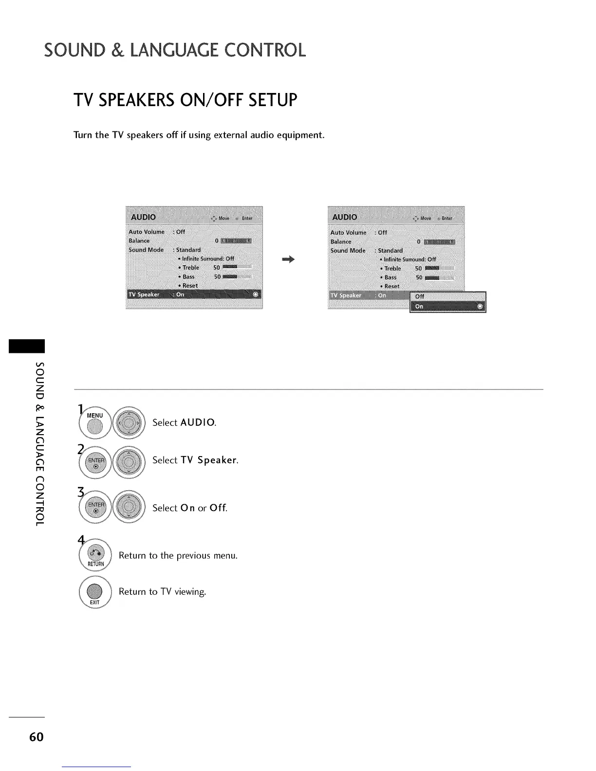 Zenith Z42PT320 - TV SPEAKERS ON;OFF SETUP