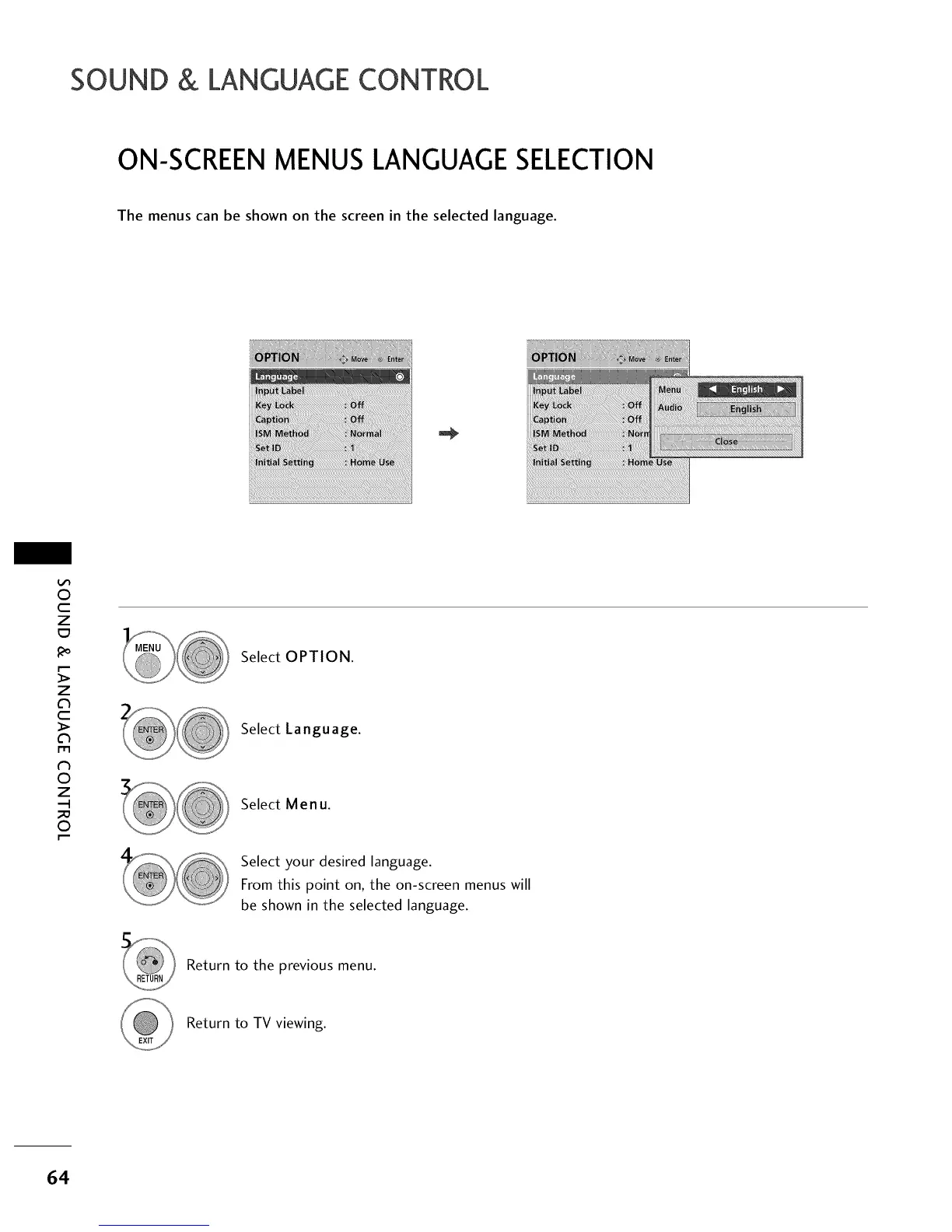 ON-SCREEN MENUS LANGUAGE SELECTION