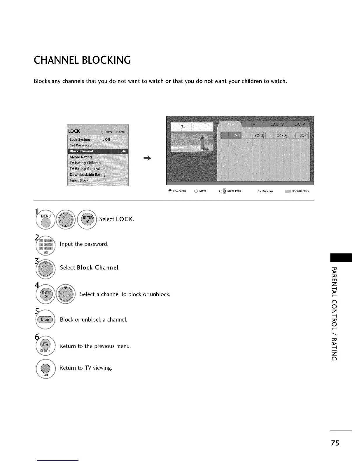 Blocks any channels that you do not want to watch or that you do not want your children to watch.