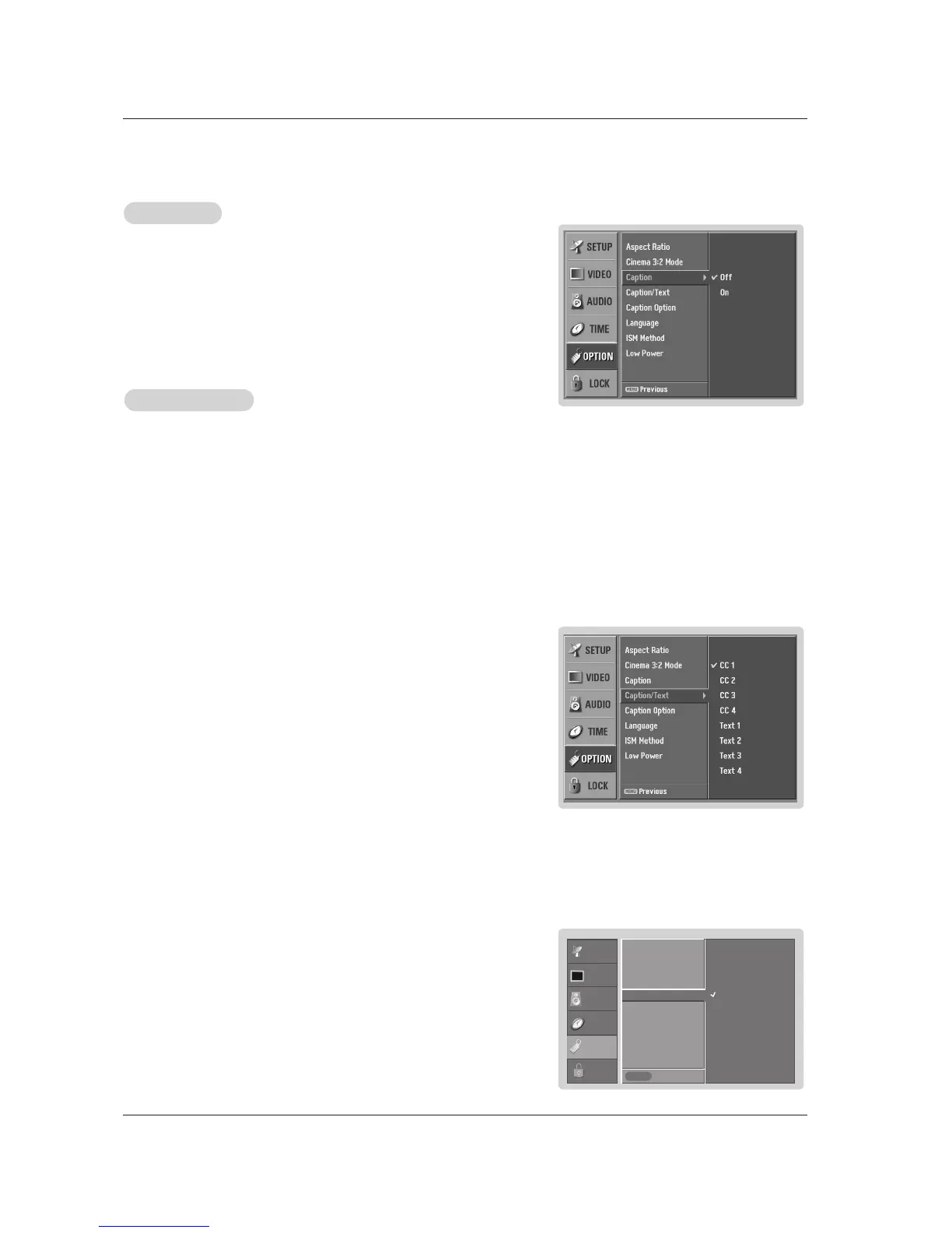 1. Use the CC button repeatedly to select Caption CC1, CC2, CC3, CC4, Text1, Text2, Text3, or Text4.