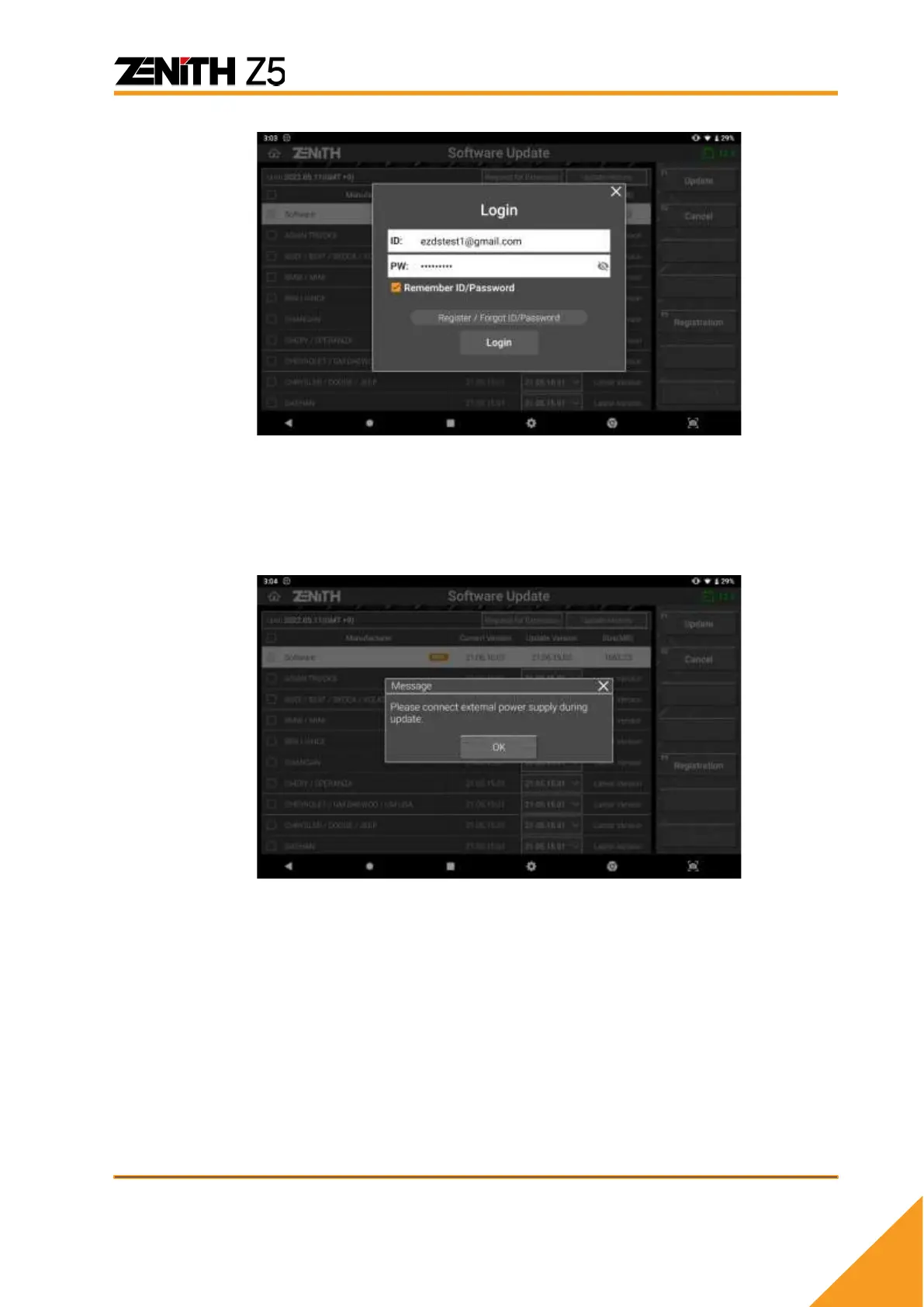 to use of the external power while downloading and updating software. It is