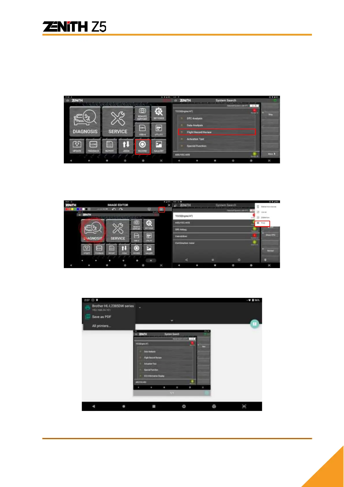 application in [Record]. For the purpose of this manual, only Z5 application will be explained.