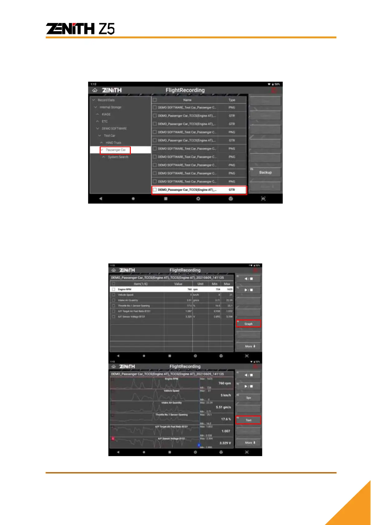 during diagnosis. Data recorded during [Data Analysis] is saved as ‘GTR’ format. Select the file