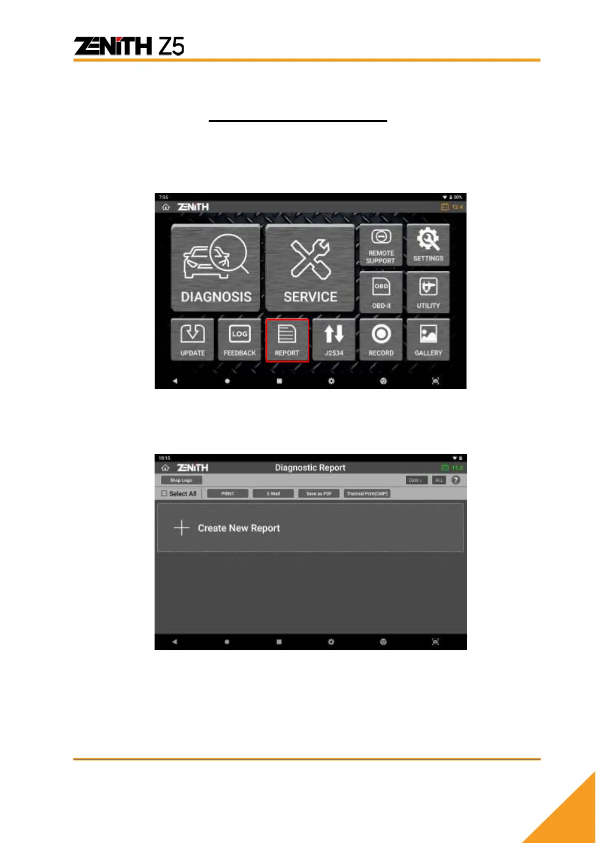 Selecting [Diagnostic Report] in main screen, as shown above, allows you to view the
