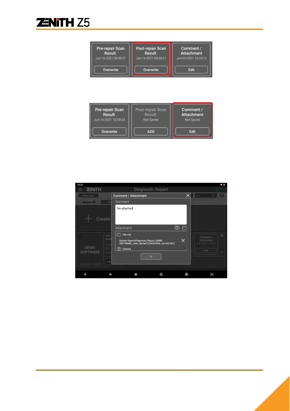 next to the image and pressing [OK] button will attach image to the report.