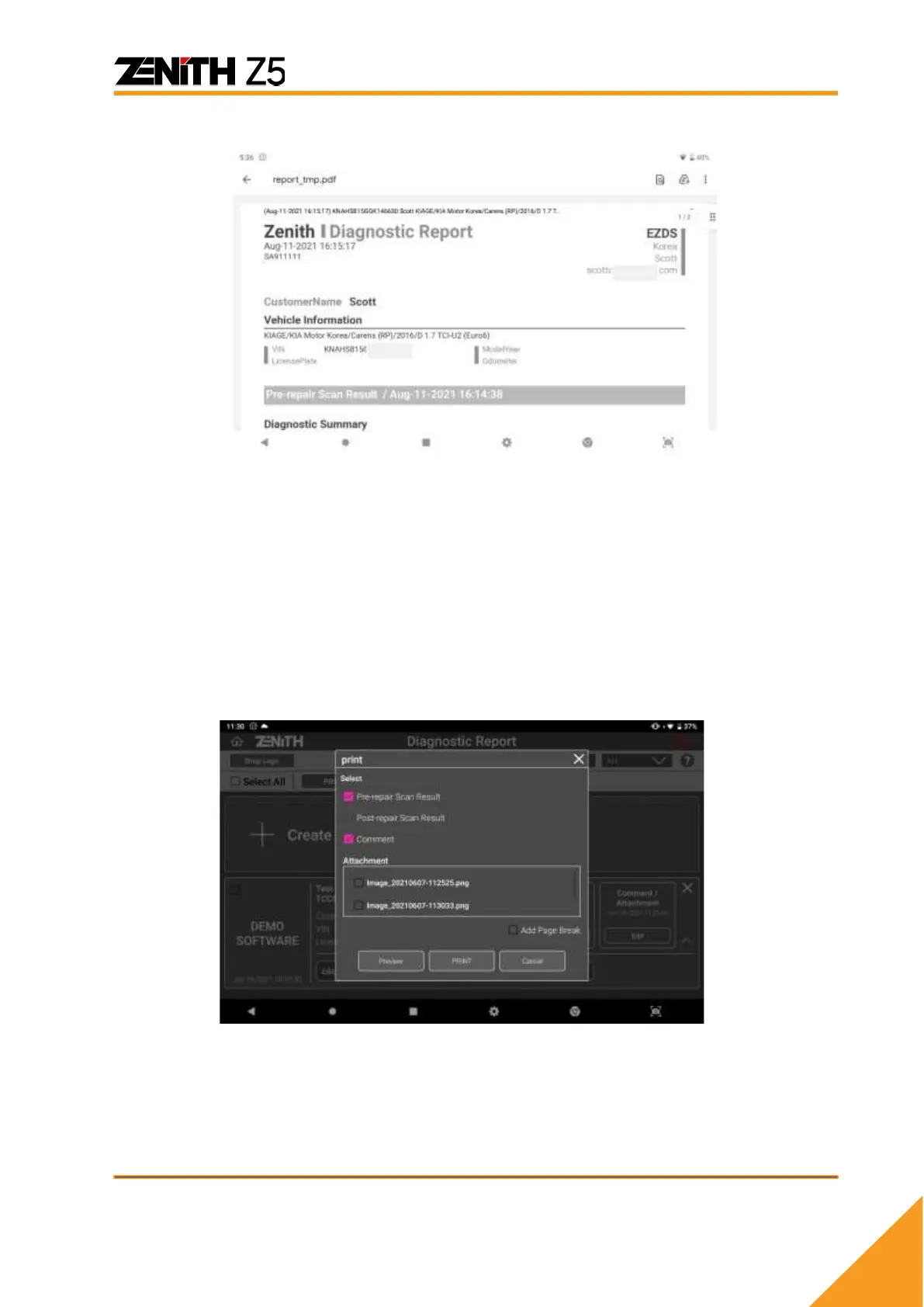 With connection to the printer, you can print the diagnostic report by selecting [PRINT]