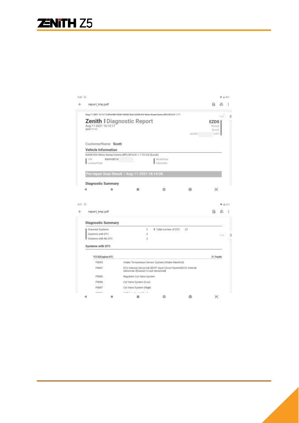 Preview: Pre-repair scan result